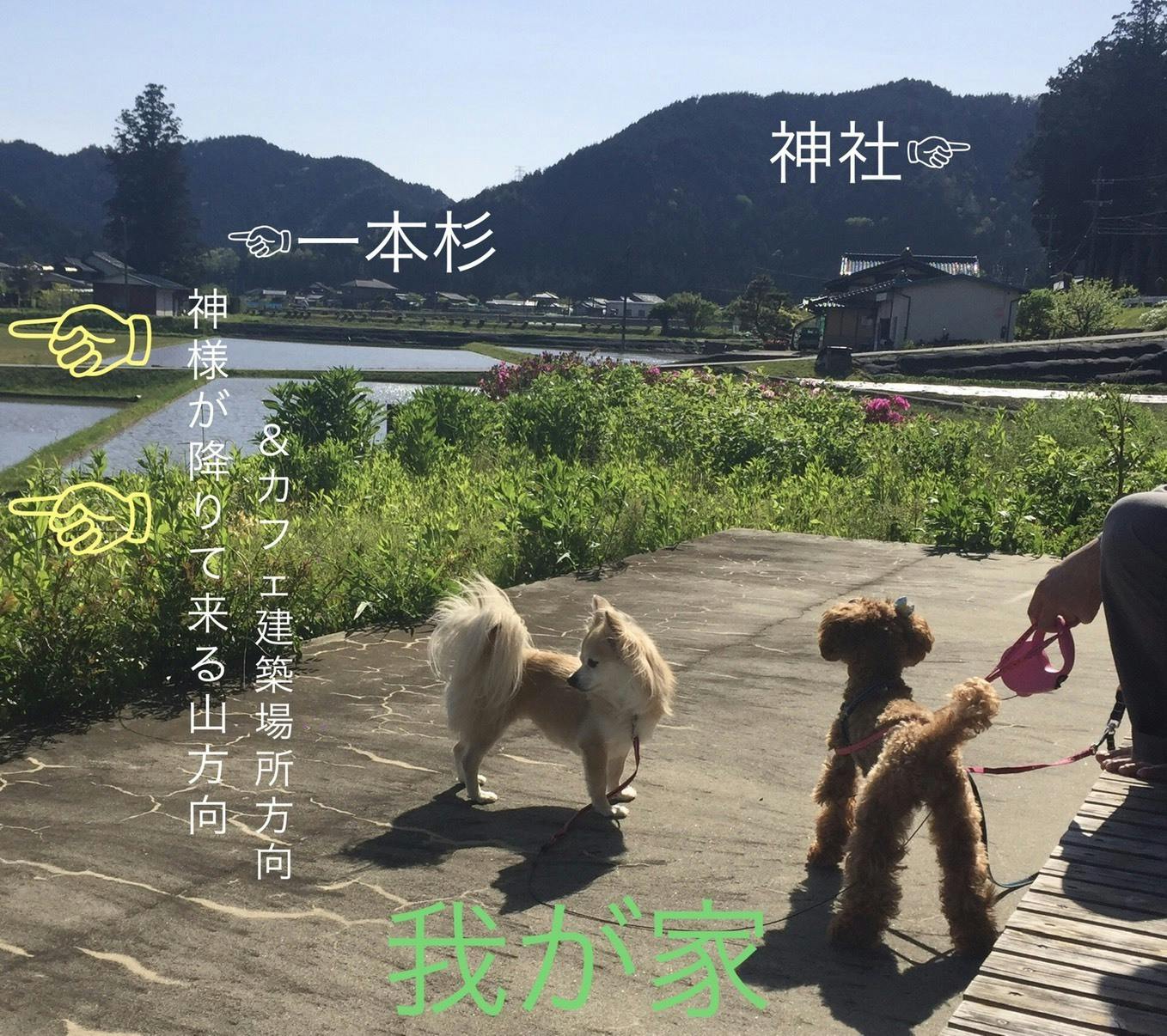 「あー、ここだここだ~。この土地の向かいのあの山の間からいつか神様が降りてくるよ」と言われ、