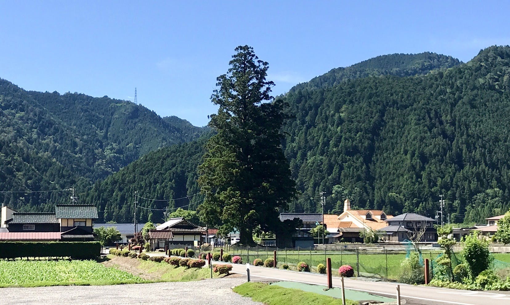 先ほど書きました天岩戸の扉を吹っ飛ばした手力男命(たぢからをのみこと)様を祀った戸隠神社というパワースポットと、そのすぐそばに樹齢約千年の一本杉が鎮座しています。