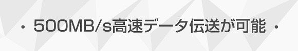 USB3.1(Gen2)接続により、最大500MB/sという外付けSSD最高レベルの転送速度を実現しました。