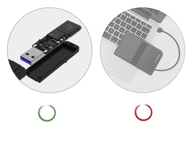 ケーブル接続不要なので、ケーブルを紛失したり、忘れたりする心配がありません。USB接続できるからコンパクト!