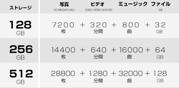 例えば、iPhone8のカメラで写真を撮ると、512GBに保存できる写真はなんと約3万枚(1枚当たりのデータサイズは約2MB)!たくさんのRAWファイルを保存できるプロフェッショナル・ツールです。