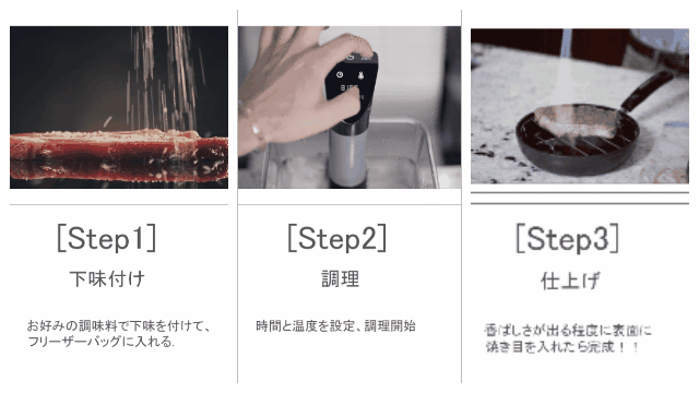 例えばステーキを焼く。一般的な調理方法では焼き加減のコントロールは難しく、肉の表面は硬く、中はほとんど生の状態になりがちです。過熱しすぎると、肉の中はミディアムレアになり、表面は硬くなって噛み切りにくかったりします。多くの人に人気のミディアムレアは、経験と技術のある一流のシェフならではの料理であり素人には難しいです。