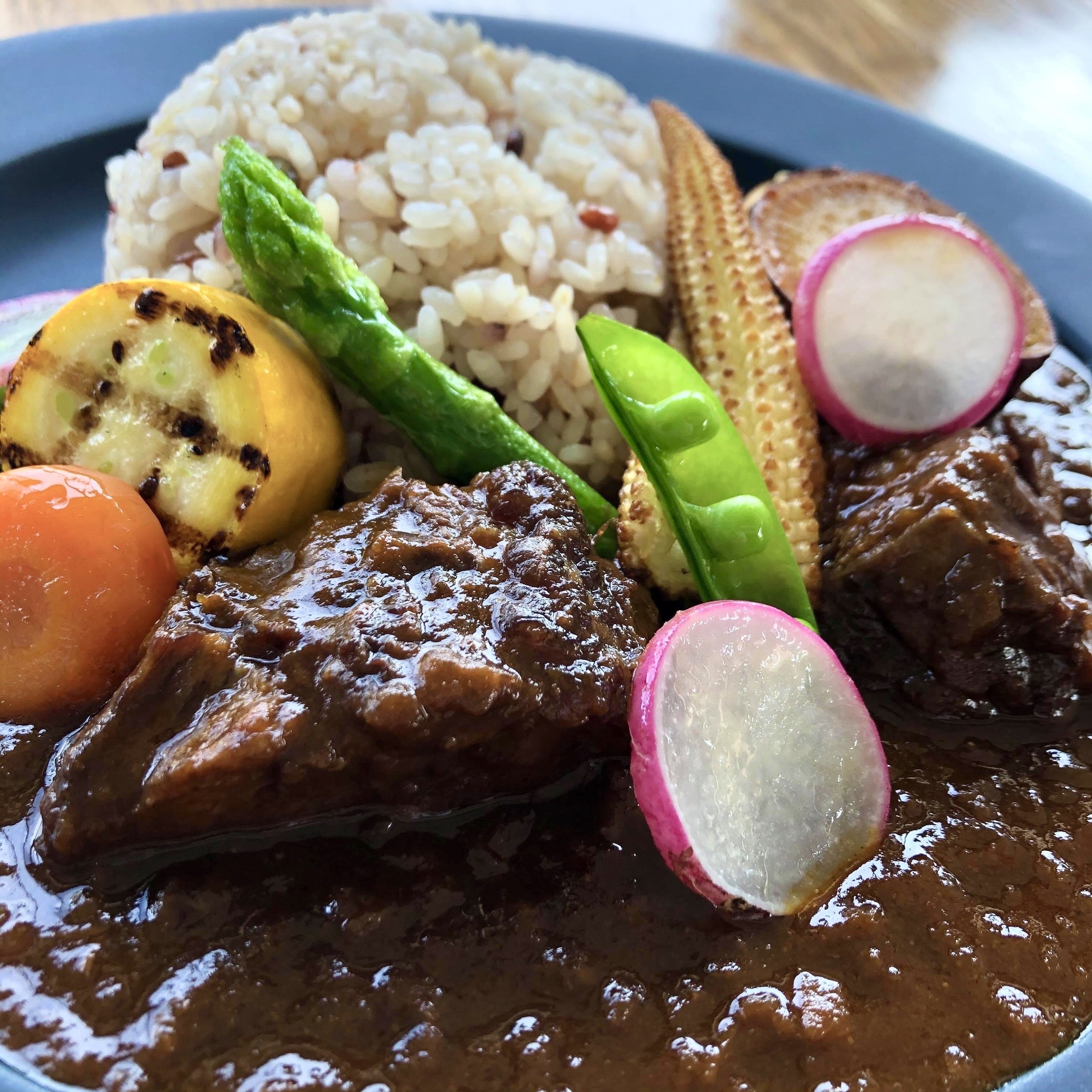 丁寧に育てられた有機野菜はそのまま食べても味が濃く、お野菜の香り、味がしっかりしています。仲間の農家さん達のお野菜をいっぱい使って旨味をギュッと詰めたカレーソースに。。シェフの技術でやわらかく煮込んだ和牛のホホ肉(かなり大きめ)がゴロっっと入ります。仕込みから3日間かけて完成に至るなんて豪華なカレー。