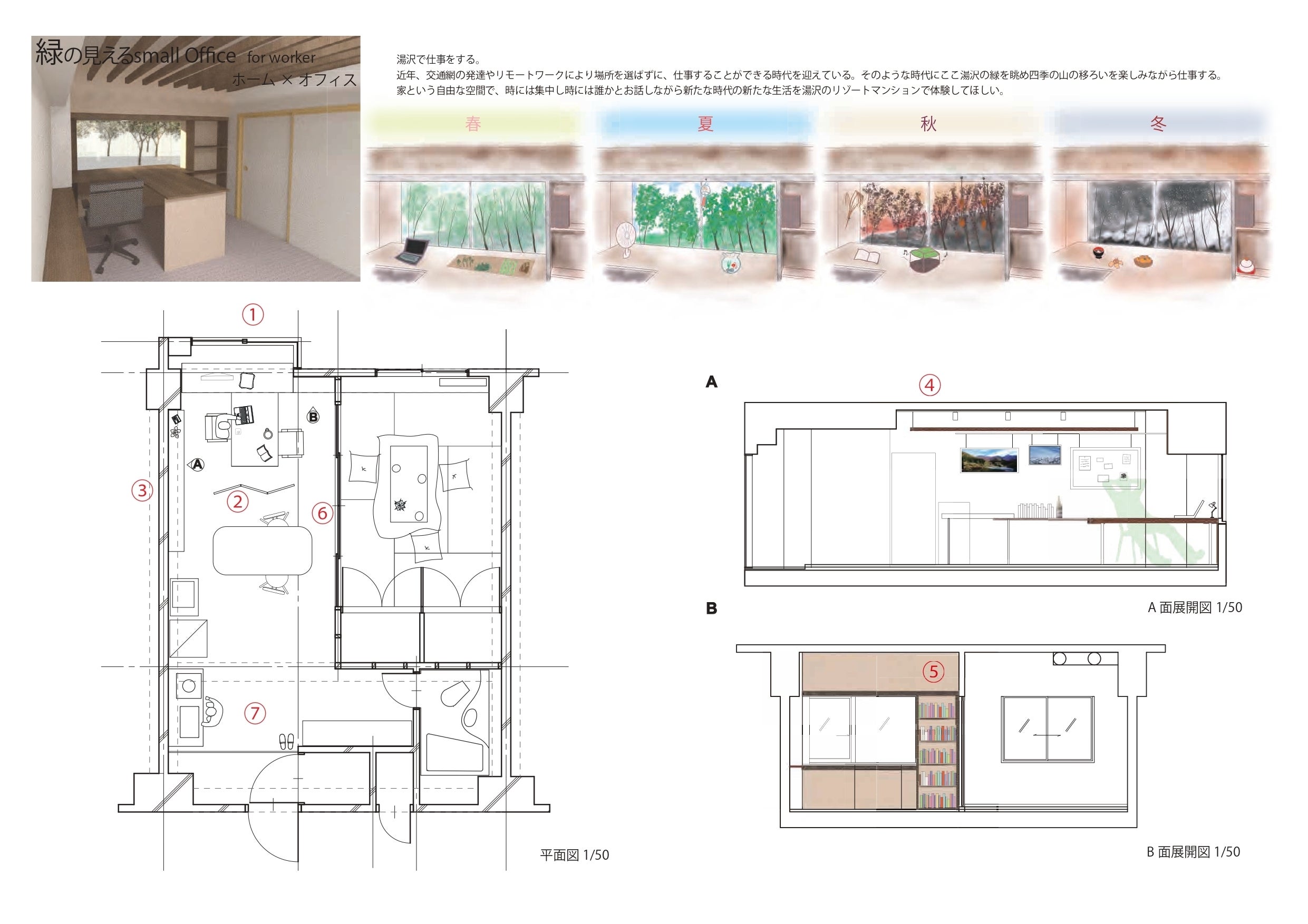 本住居のテーマは「自然の中に暮らしながらリモートワークができる部屋」。
