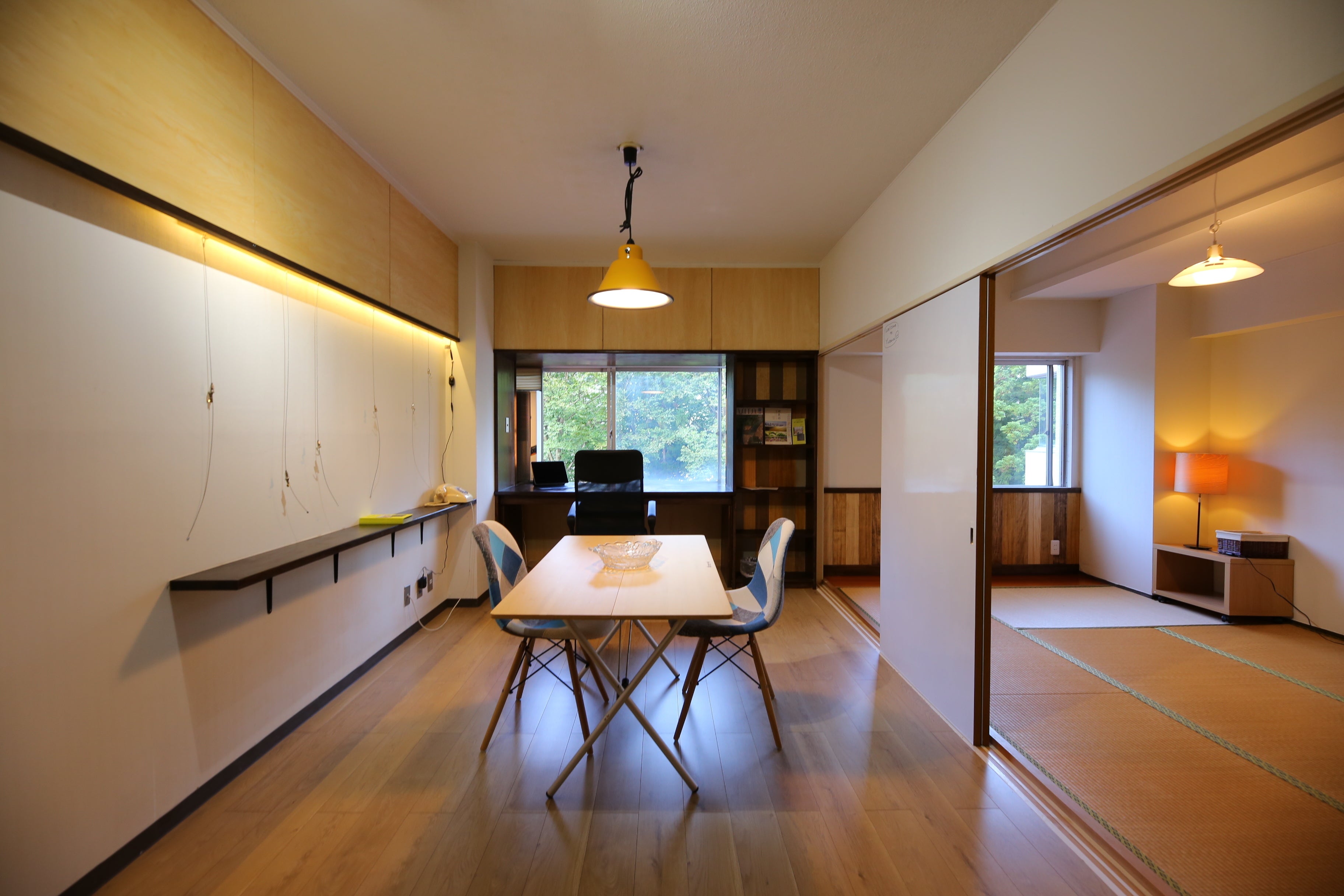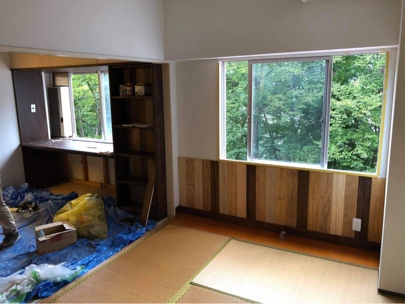 2020/09/17 17:33ご支援いただきましたみなさま、大変お待たせいたしました。トーコー湯沢、湯沢暮らし体験住居、ついに完成です!お部屋の中に入ると、ひらけた窓がまず目に入ります。冬は白、春は新緑、今は深緑、これから秋には紅葉・・・四季がはっきりしている越後湯沢の自然環境を望みながら、トーコーは山の中腹にあるので清々しい空気を取り入れながら、お部屋の中でお仕事に集中しながら、湯沢の町へ時に繰り出しながら、湯沢の魅力を探索できる。観光とはまた少し違う「暮らし」を体験できる。そんなコンセプトのお部屋になっております。1LDK、入ってすぐのお部屋は40年前に施工されたカーペットフロアでした。そこを剥がして、木のクッションフロアタイルを貼りました。くすんだ壁紙や天井にペンキを塗り、窓が自然と織りなす風景が生きるように、木の感じを大切にした腰壁や、シナベニアの壁など仕様にもこだわりました。家具家電は、トーコーの管理組合さまから余剰をお借りしたり、クラウドファンディングを原資に新規で購入などして、鞄ひとつで日常生活が体験できるような備品を揃えさせていただきました。この部屋をつくるのに、多くの方々のご支援をいただきました!クラファンにご協力いただきました、多くのみなさま。クラファンの特典で、一緒にDIY作業をしてくださったみなさま。インパクトドライバを握ったこともない学生たちに、施工指導をしてくださった大丸建設の廣田さん、teamりのべるの西潟さん夫妻、KILTA財団のくわばらさん・丹羽さん。かつてないスキームにご協力くださいました湯沢町役場のみなさま、トーコー湯沢管理組合・管理会社のみなさま。そして、企画から設計・施工・清掃や運用まで考え、試行錯誤を頑張った芝浦工大・佐藤研究室のみなさま、佐藤先生。応援してくださったみなさまのおかげで完成を迎えました。9/22より、最初のご予約の方が入居予定です。完成してこのプロジェクトは終わりではございません。湯沢の魅力を、この体験住居を通じてお伝えできるように、湯沢のファンを増やし、そこから湯沢の関係人口や二拠点居住や定住してくれる人を増やしていけるようにいたします。どうぞこれからもよろしくお願いいたします。きら星株式会社 代表取締役 伊藤綾 もっと見るまだ未完成です。残作業でまた研究室に力を貸してもらいます。