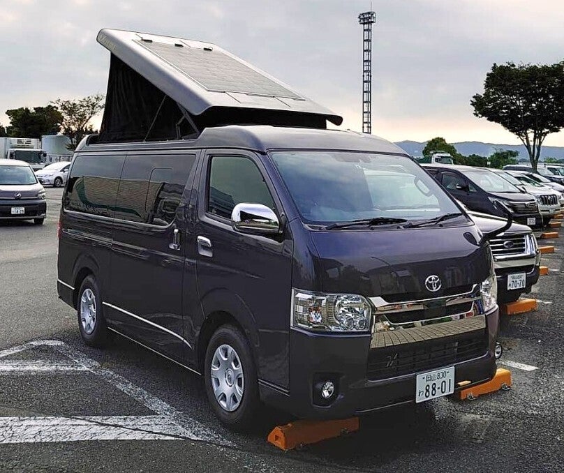 ケイワークス・ハイエース・オーロラ・エクスクルーシブ・ナローボディ、バンコン・キャンピングカー、ザ・エイチーム仕様車両。ベース車両はダークプレミアム2になります。バンコンキャンピングカーを購入したいけど、どんな仕様か一度体験したいという意見が多くありました。そしてこの度、ケイワークスさんで製作して頂いた今一番人気のある車両を、レンタルとして導入します。レンタル開始に向けて、只今準備や、車両メンテナンスを致します。もう暫くお待ち下さいませ。標準装備は、リアモニター純正ハンドメイド家具(無垢天板)オリジナルセカンドシート&ベッド脱着式センターテーブルボディ内側断熱施工オリジナルリーフスプリング遮光カーテンUSBポート2口ポップアップルーフ290wソーラーパネル外部電源システム&サブバッテリーチャージャーリチウムイオンバッテリー3機搭載1500wインバーターAC100vコンセント2箇所12vシガーソケットメインサブバッテリーデジタル電圧計走行充電システム4連スイッチパネルLED室内灯電子レンジ49リットル冷蔵庫国産エアコン、等ザ・エイチーム仕様は、前後ドライブレコーダーや、クルーズコントロール(追従機能はありませんが、長距離は楽になります)、そして1.5トンまでのトレーラー牽引可能など、運転においてもさらに装備を充実しています。また、サイドオーニングの装着も検討しています。新たなバンコンオーナー様との出会いを楽しみにしております!