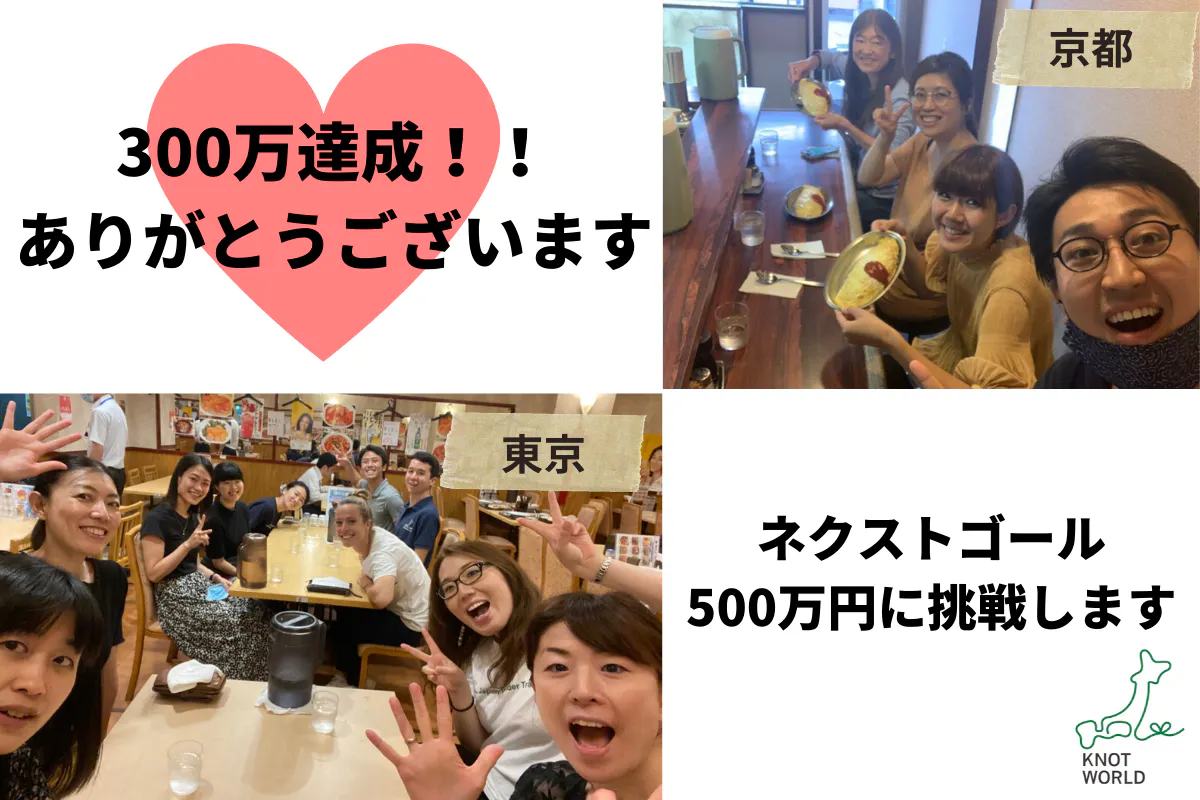 新たな目標を500万円に設定させていただき、達成致しましたら支援者様全員に【研修の10%OFFクーポン】と【ツアー10%OFFクーポン】を発行させていただきます。