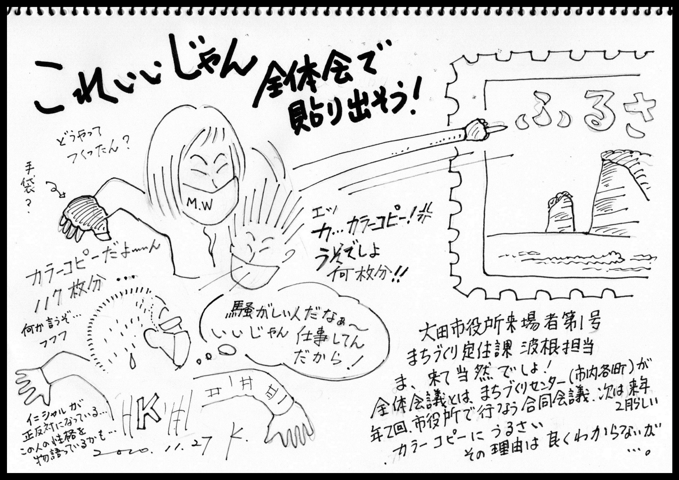 2020/11/30 06:3011月29日(日)344人の皆さまの来場をもって無事「波根展」を終了することが出来ました。コロナ禍でもあるし、美術館の企画展もなく(県展と伝統工芸展の狭間の一週間)、ギャラリーもわれわれ一団体のみで客足は伸びないだろう、せいぜい200人いくか行かないかという、そんな「どんよりした気分」を地元波根軍団をはじめご来場いただいた皆さまに吹き飛ばしていただきました。波根展を「出身者として誇りに思う」ある方からいただいたこの言葉は、「やってよかった」と、今回の企画に勇気と自信を与えていただきました。 最近個人的に思うことがあります。切手制作や波根展など、このような小さな動きを積み重ねるなかで、波根町民のみなさんが明るく元気になったような気がします。このような気持ちの変化が、一人ひとりが思い思いのまちづくりへ踏み出す動機付けとなればと考えています。まちづくりセンターは、そのような人たちを今後も支援していきます。希望が見えてきた、来るもの拒まず! もっと見る