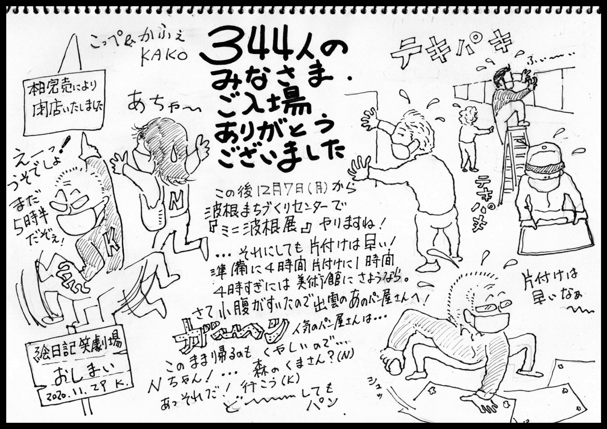 2020/11/29 07:004日目:コロナ禍でたいへんな中、おかげさまで目標としていた入場者数200名を超え275名の皆様方に波根展をご覧いただいています。さあ、29日(日曜日)が最終日です。雨模様が心配されますが、お見逃しなく。 もっと見る
