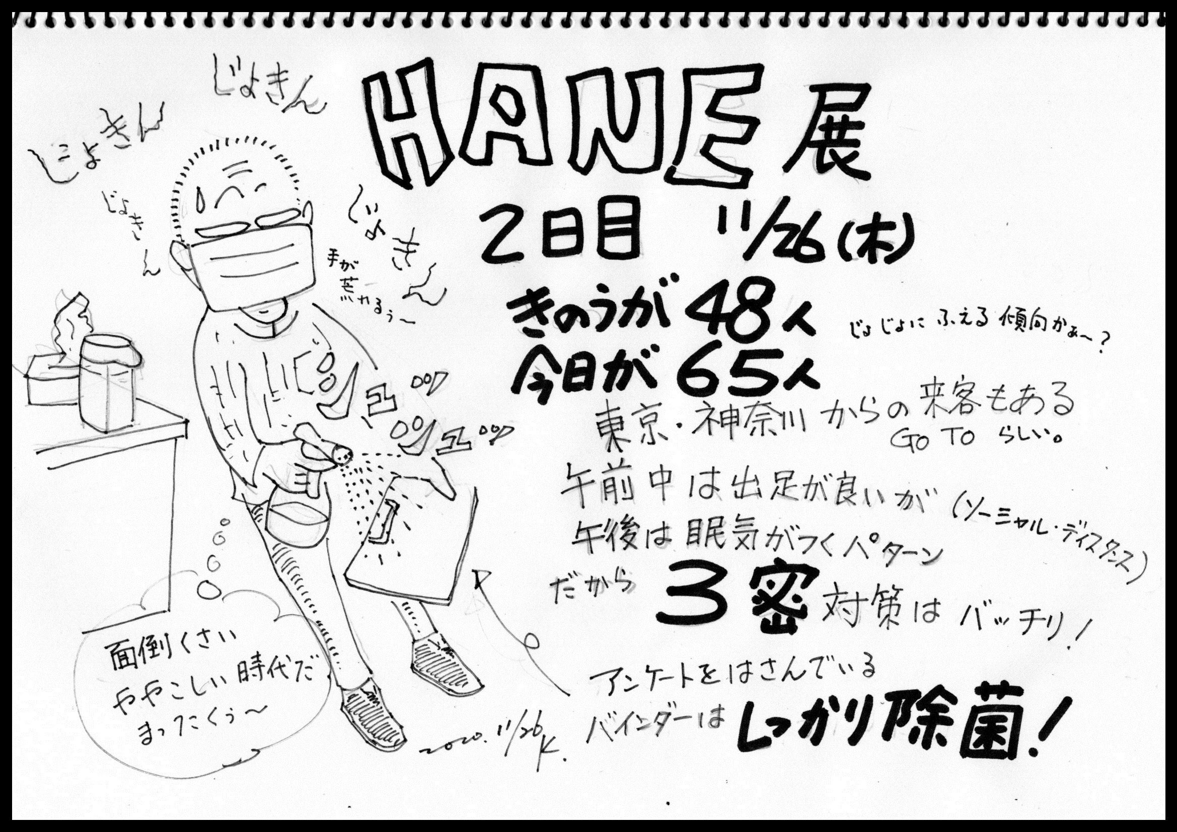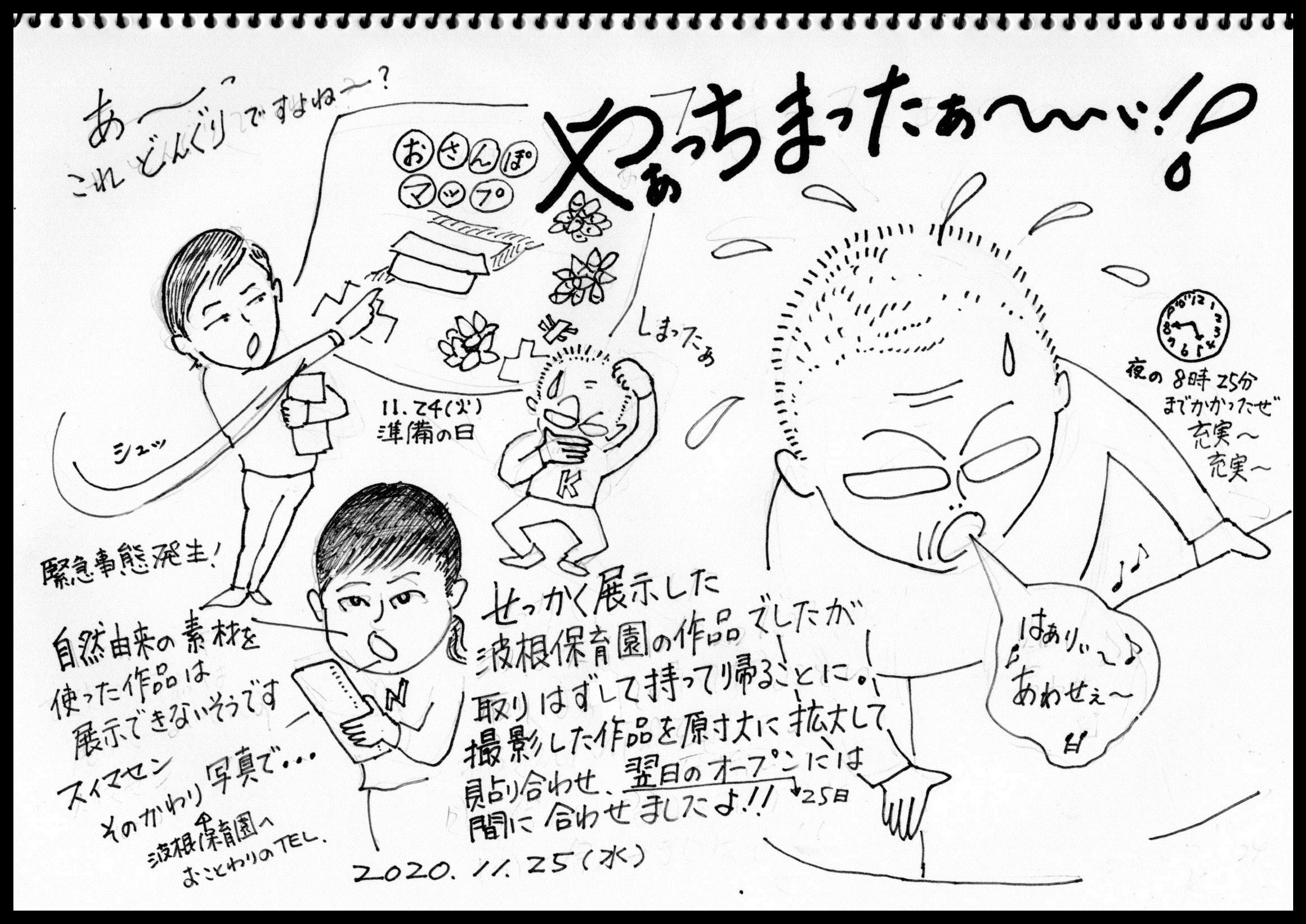 11月29日(日)344人の皆さまの来場をもって無事「波根展」を終了することが出来ました。コロナ禍でもあるし、美術館の企画展もなく(県展と伝統工芸展の狭間の一週間)、ギャラリーもわれわれ一団体のみで客足は伸びないだろう、せいぜい200人いくか行かないかという、そんな「どんよりした気分」を地元波根軍団をはじめご来場いただいた皆さまに吹き飛ばしていただきました。波根展を「出身者として誇りに思う」ある方からいただいたこの言葉は、「やってよかった」と、今回の企画に勇気と自信を与えていただきました。 最近個人的に思うことがあります。切手制作や波根展など、このような小さな動きを積み重ねるなかで、波根町民のみなさんが明るく元気になったような気がします。このような気持ちの変化が、一人ひとりが思い思いのまちづくりへ踏み出す動機付けとなればと考えています。まちづくりセンターは、そのような人たちを今後も支援していきます。希望が見えてきた、来るもの拒まず!