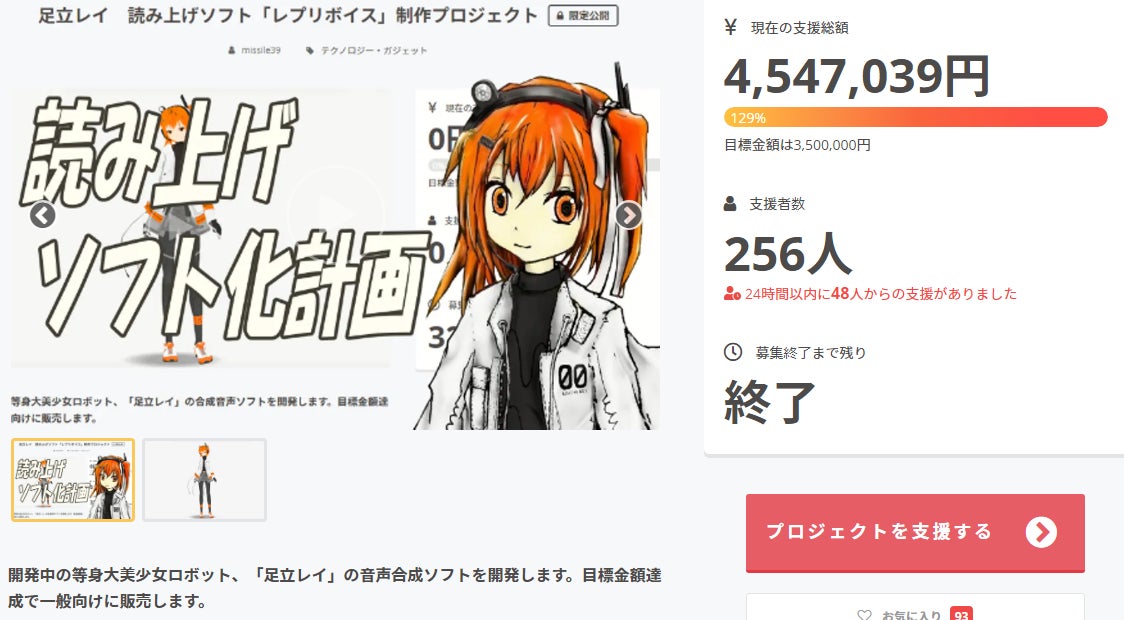 昨晩クラウドファンディング最終日でしたが、最終的に454万7039円を集め、第2ゴールの感情スタイル「喜」追加まで達成して終了しました!°˖☆◝(⁰▿⁰)◜☆˖°