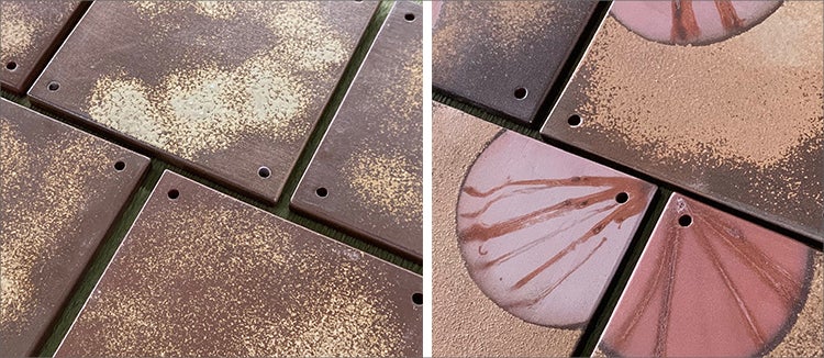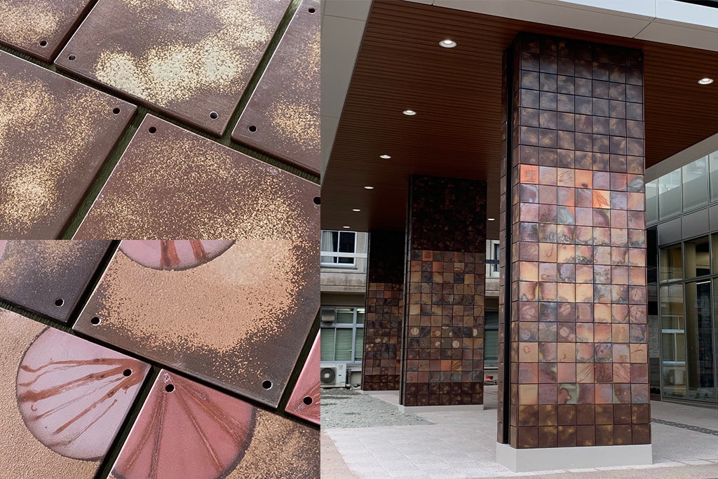 画像の備前焼タイルは四隅に丸い穴が開いています。