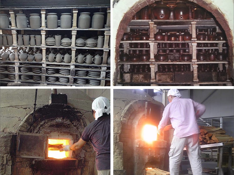 焼き上がった色合いは、胡麻・棧切・緋襷・牡丹餅などの変化に富んでいますが、それらは窯詰めの仕方や燃料である松割木の焚き方などの工夫と、千数百度の炎の力によって約2週間かけてじっくり焼き締められて出来たものです。