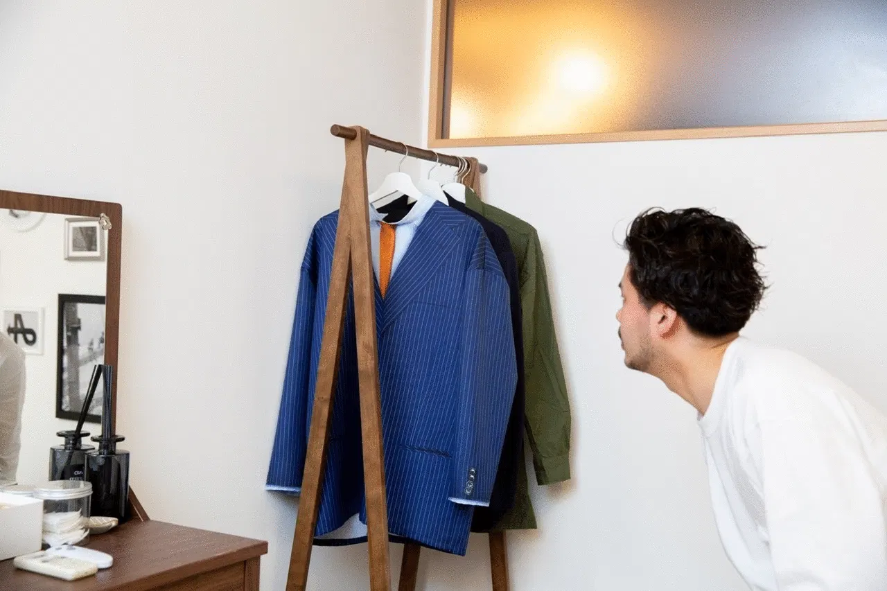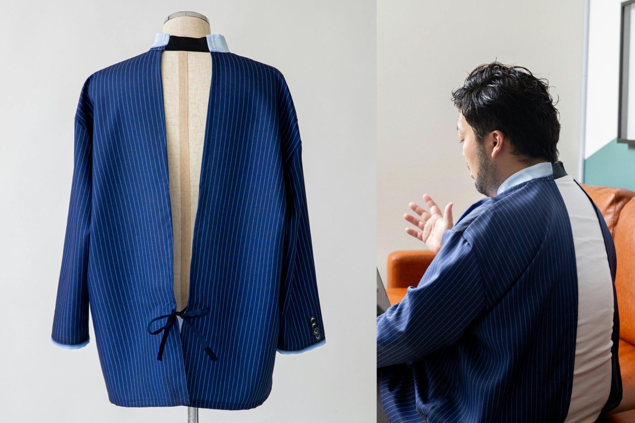 もちろん使い勝手や利便性も考えましたが、RIMOSUを着て同僚や上司にリモート会議を通して「ホンマのスーツじゃなくてフェイクのスーツ着てるんやで」と心で思い楽しんでいただければ嬉しいです。