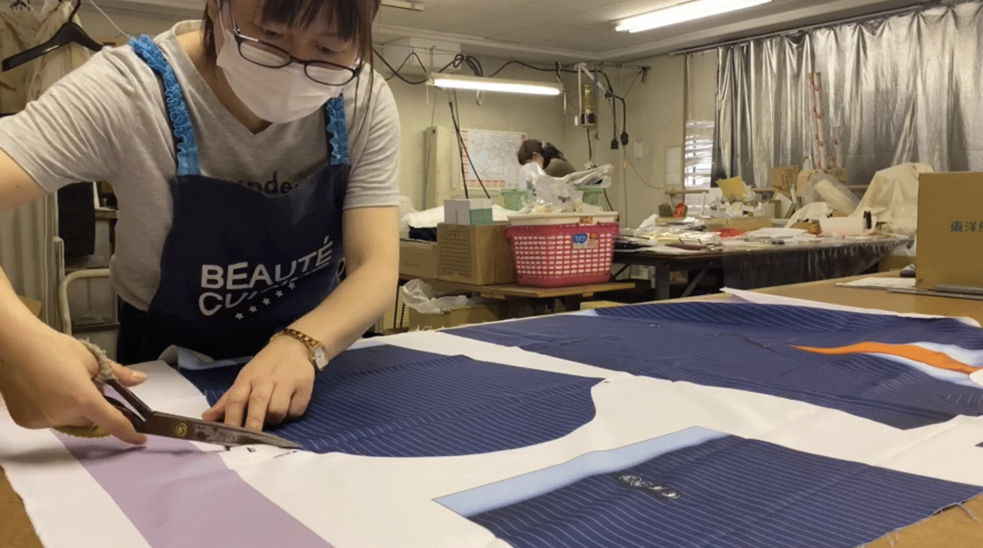 プリント、裁断、縫製、全ての工程を国内工場で行い
