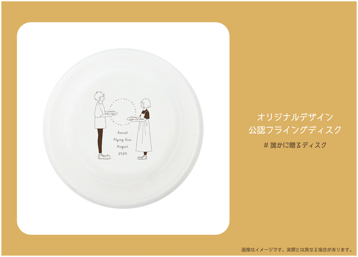 見知らぬ誰かに「楽しい」を贈り、それが同時に自分自身の「楽しい」にも繋がる。目に見えなくても誰かと繋がっている「社会」という機能を改めて認識する機会になれば、と思っています。公園で見知らぬ誰かが投げているフライングディスクのデザインを見て、「もしかしたら、自分が贈ったディスクかも知れない」と、こっそり思う。そんな静かに優しい社会を、一緒に作りませんか。