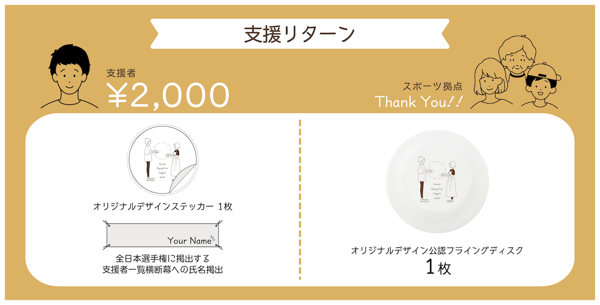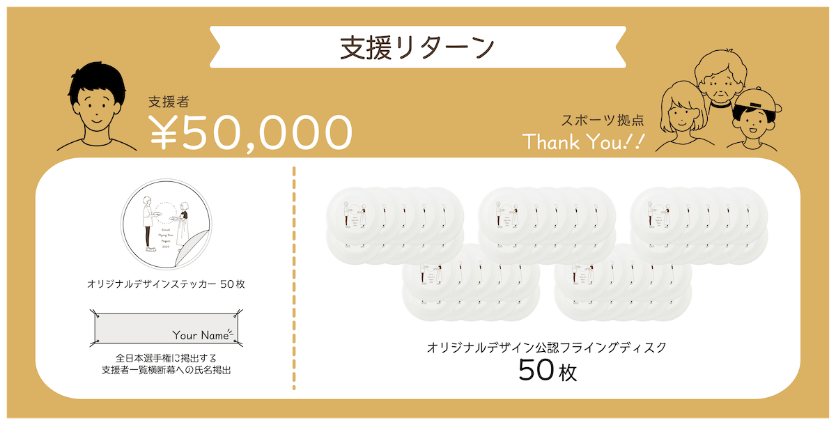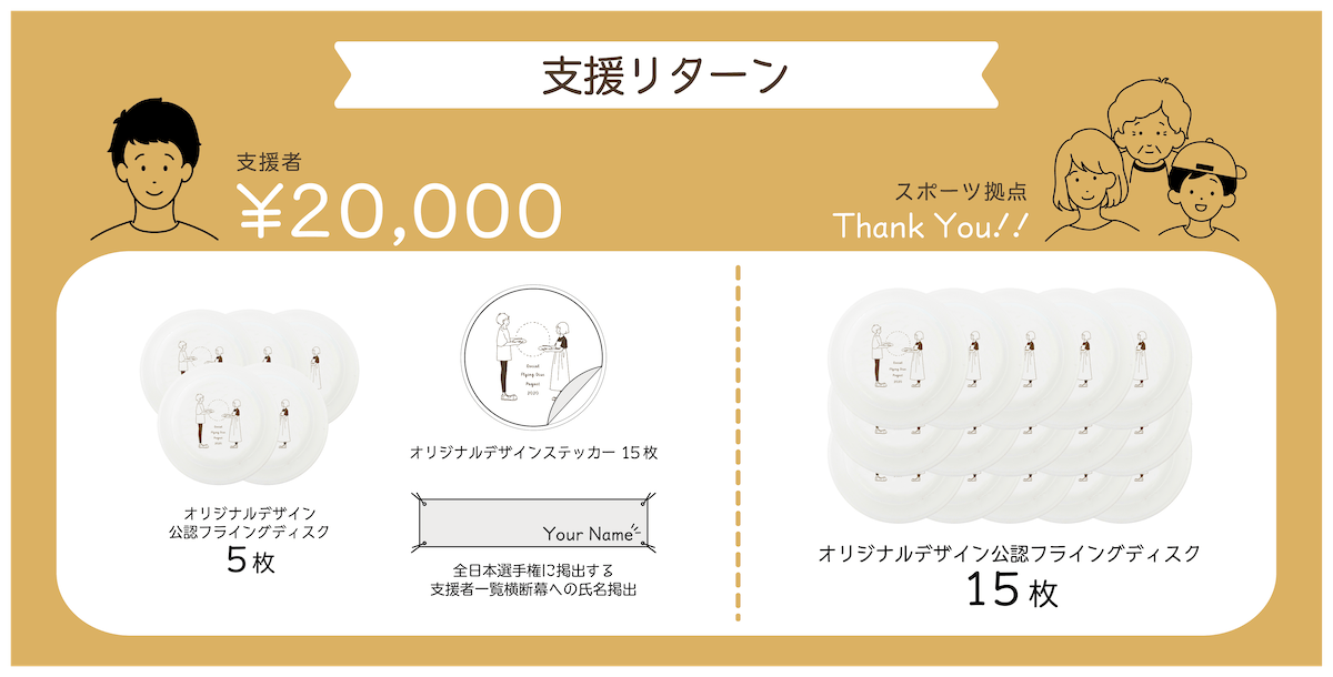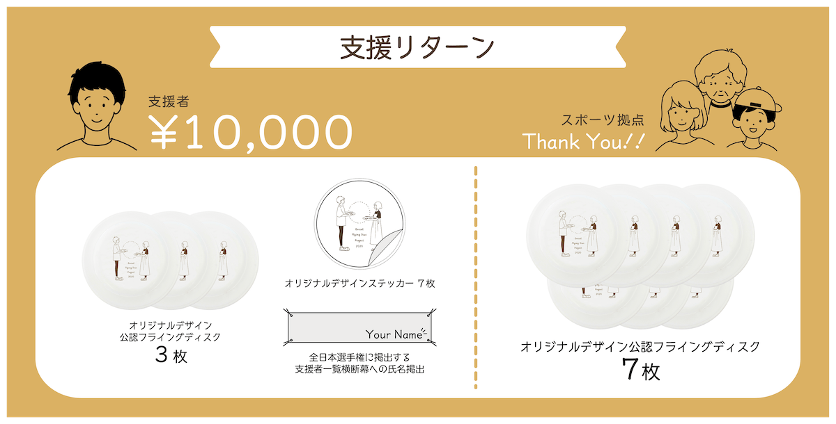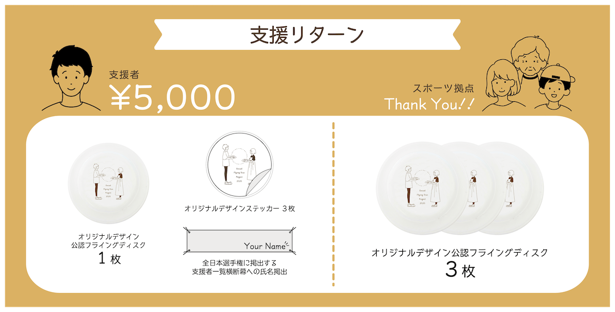 ※目標達成で、約5,000枚のフライングディスクを日本中に届けることができます。
