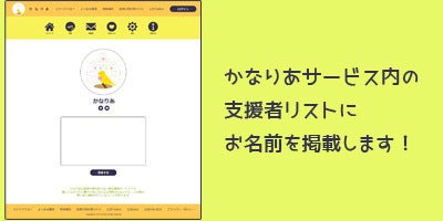 30000円のご支援をいただいた方には、かなりあへのバナー広告の掲載をさせていただきます。