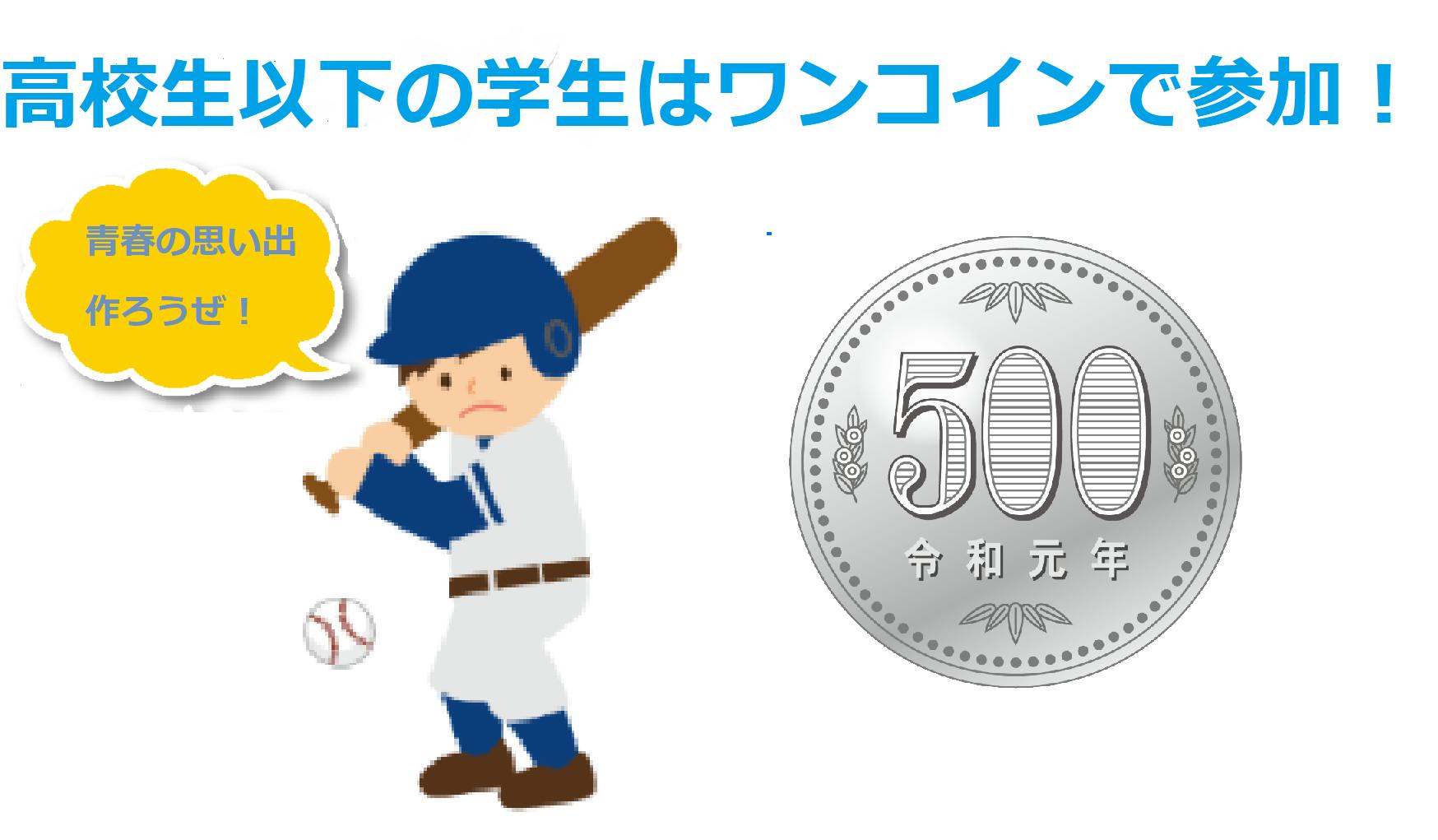 ②このクラウドファンディングで自分自身も画像で参加したい!と思ってくれた高校球児や高校生の方々にはクラウドファンディングの最小金額の500円で参加してもらい、高校野球に青春をかけた記念を残してもらいたいと思っています。もちろん高校球児の方以外でも、チアガールや応援団、吹奏楽部のみなさんもワンコイン500円で参加可能です。※小・中学生の方も500円で参加可能です!