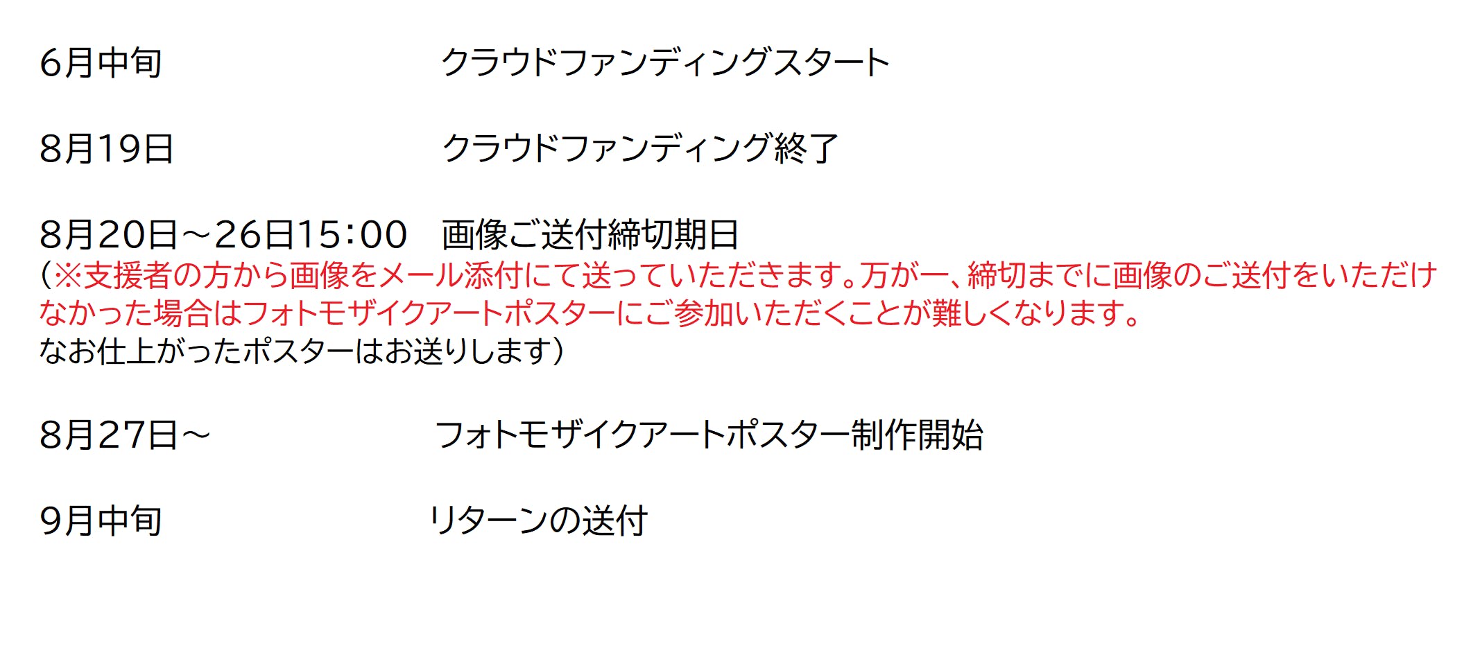 ・公序良俗に反する、また写真の使用が不可と判断された場合にはフォトモザイクアートポスターには使用されないことがあります。写真が使用できなかった場合はメールにて別の写真の再送ご依頼をしますが、ご連絡がつかない場合はポスターに写真が反映されません。