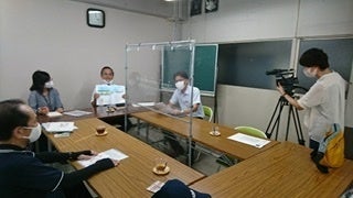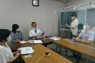 打ち合わせの様子を広島テレビの佐々木さんが取材に来て