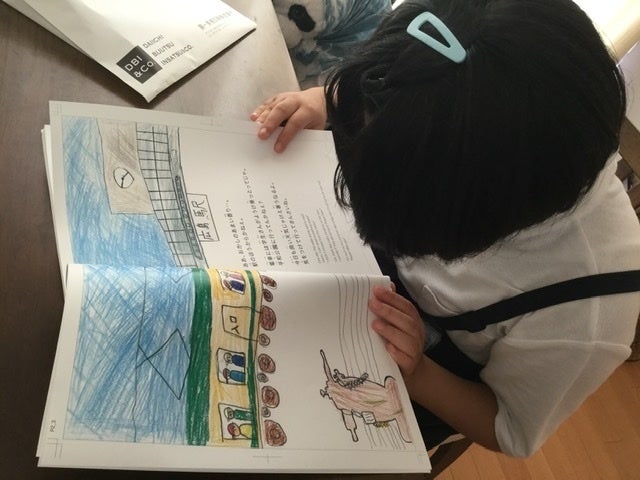 今日は第一美術印刷さまから校正刷りというものを頂きました。絵本になるすぐ前の段階。美空が学校から帰ってきてすぐに渡しました。「わぁ!」と声を上げて1ページずつじっくりと見ていました。4年生の時に画用紙に描いて作った一冊の手作り絵本が、本物の売っているような絵本になって、たくさんの人に読んでもらえるようになろうとしているんだよね。なかなかできる事はない体験をさせて頂いていると思います。 最初の手作りの絵本と特に違うのは英訳が入っている事。英語が好きな美空は音読しながらページをめくっていましたが、読めない所もあり、「何て読むんじゃろ?」と言っていました。この機会に翻訳をしてくださった藤川先生に弟子入りさせてもらったらいいのになと思いました。自分の声で、英語でも日本語でも伝えることができたら素敵だよね。絵本が完成するまで、あともう少しです!