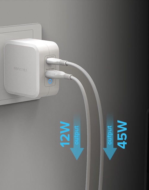 また2つのデバイスを同時充電する際も、1つのデバイスの充電が完了すれば残りのポートに出力量を自動的に振り分け、いかなるデバイスも最短時間で充電を実現します。