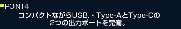 USBのType-AとType-Cと2ポート実装で、スマホとノートパソコン/タブレットなどの