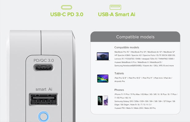 デバイスヘの充電時間を大幅短縮するAI搭載の次世代型充電アダプターです。