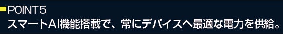 常に最適な出力を調整しながらデバイスへ電力供給するので、バッテリーが長持ちします。