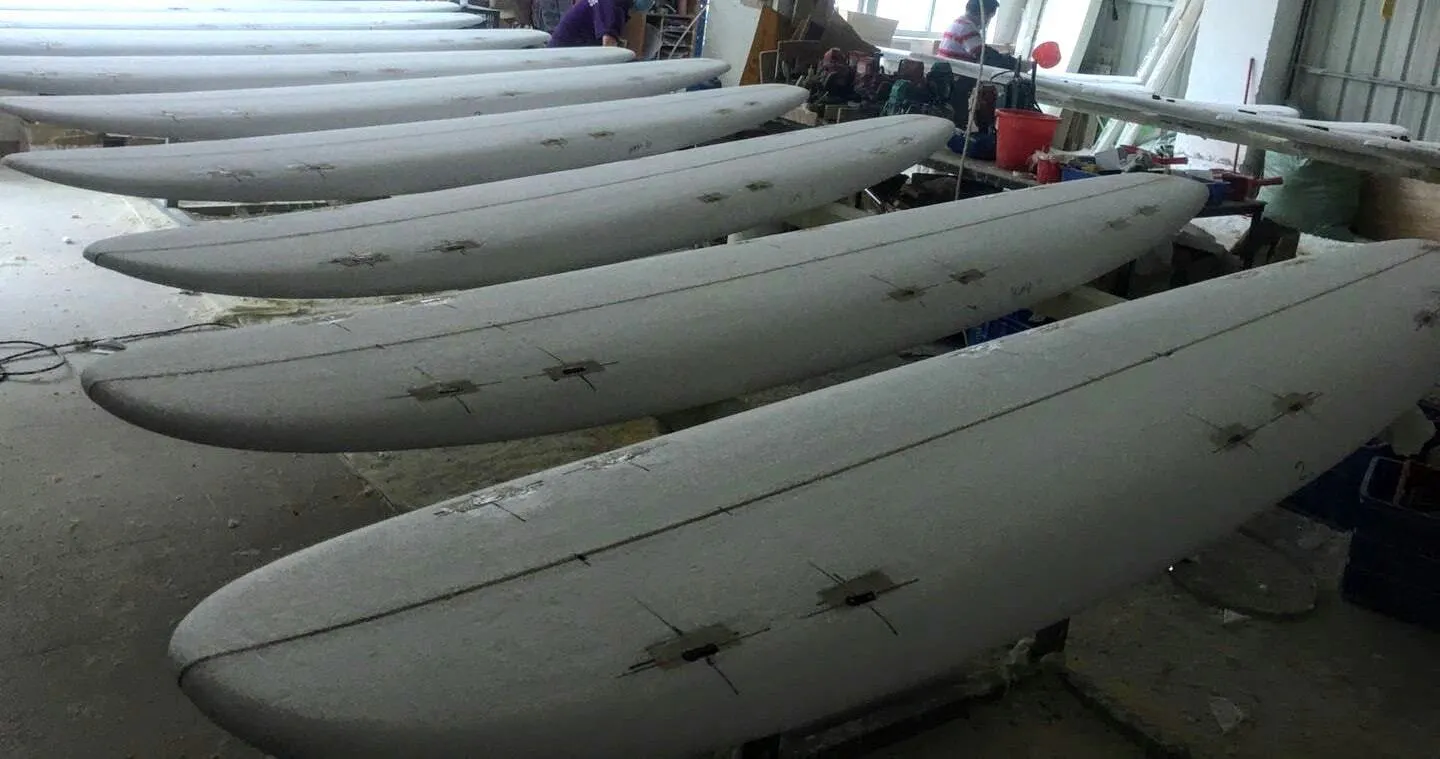 そこで、最終的には普通のサーフボードと同様に、硬質フォームと補強材(ストリンガー)を組み合わせた芯材を使うこととしました。この硬質フォームとしては、最新のサーフボードなどにも採用されるEPS(発泡ポリスチレン)という素材を採用しています。また、波の中で折れたりしては怖いので、竹をストリンガーとして入れて、さらに強度を高めました。