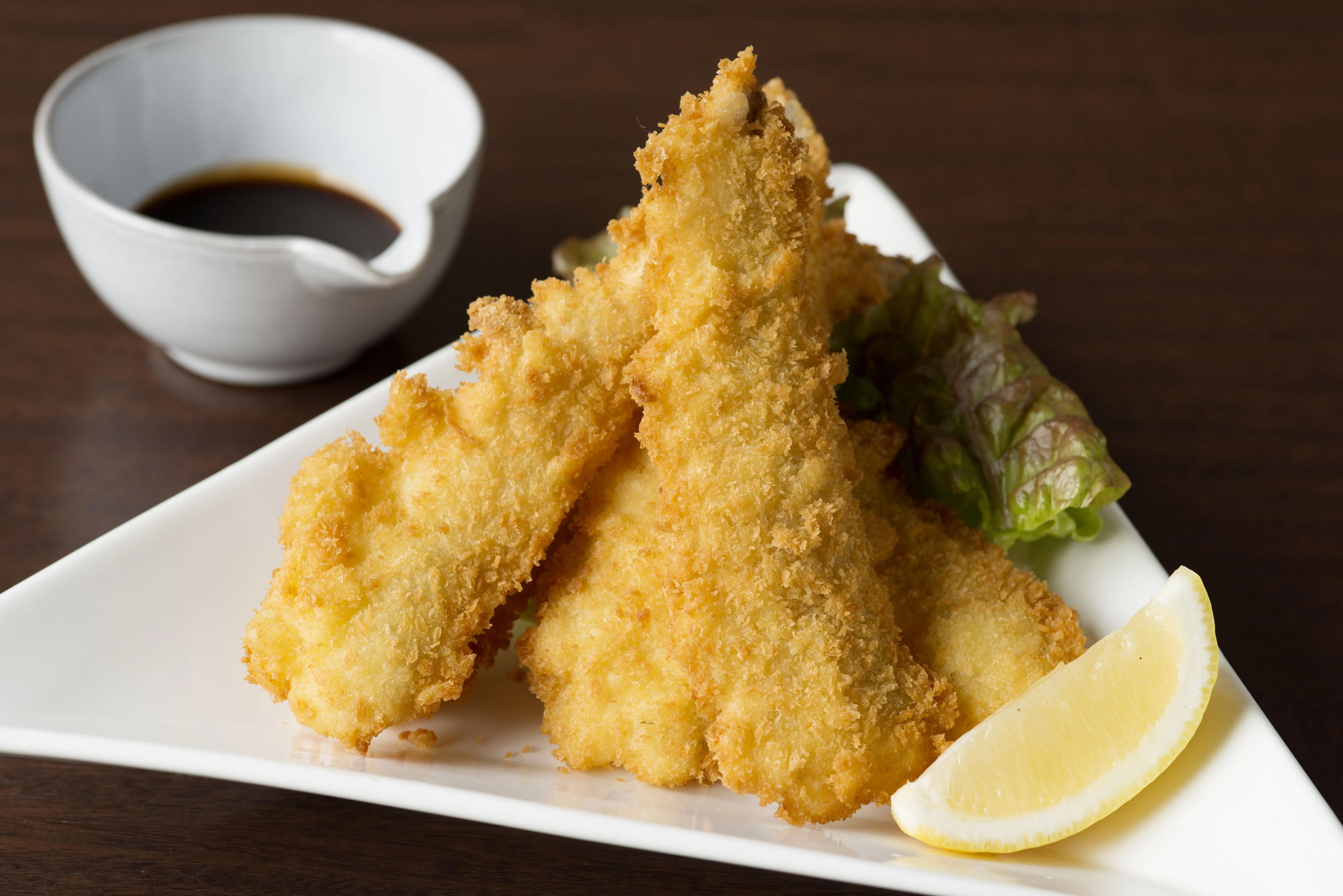 ソースで食べるもよし、レモンを絞ってさっぱり食べるもよし!