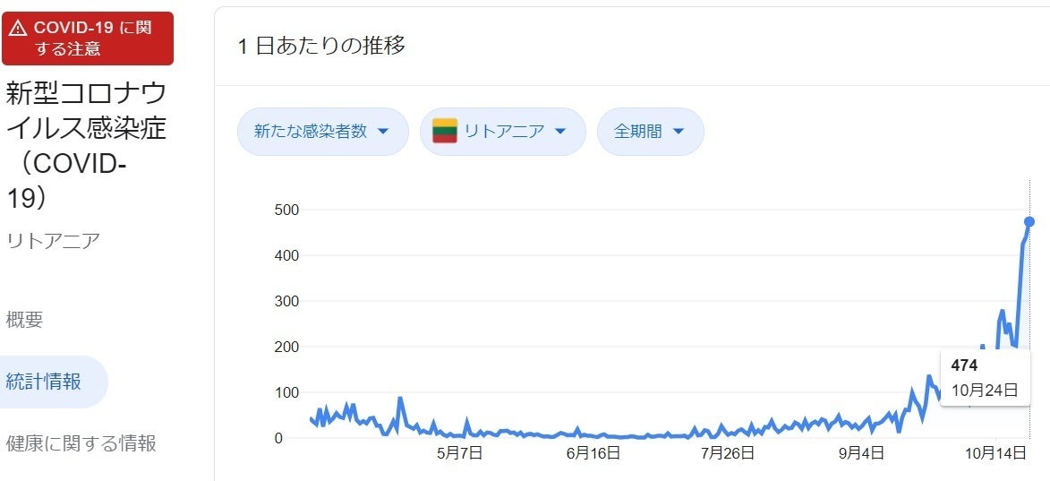 杉原記念館があるリトアニアも同様に感染者が増えており、