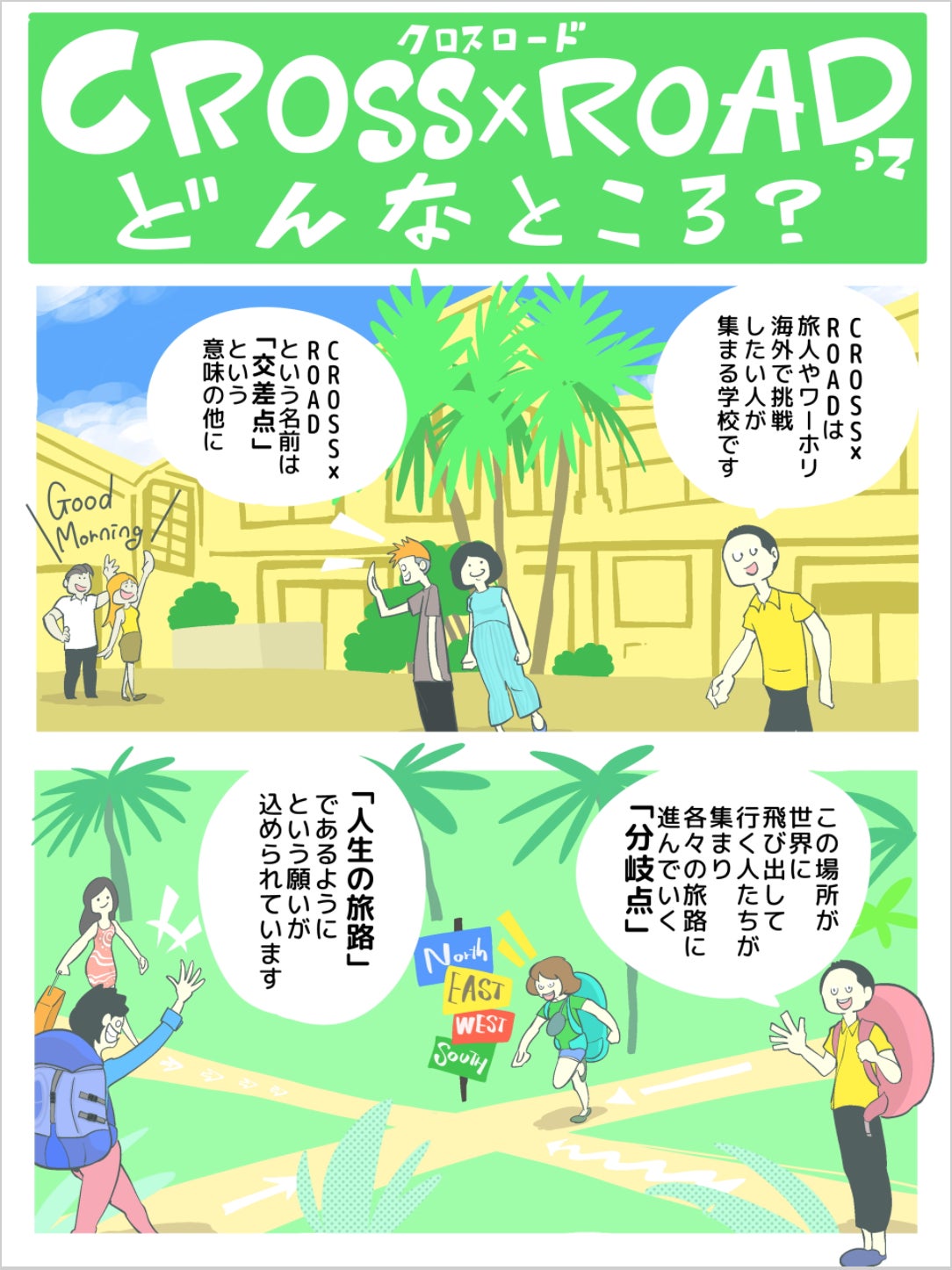 2012年12月、私たちは、日本にいるもっとたくさんの人が世界の冒険の旅に出られるようにサポートするべく、英語を学ぶための場所「CROSSxROAD」をつくりました。