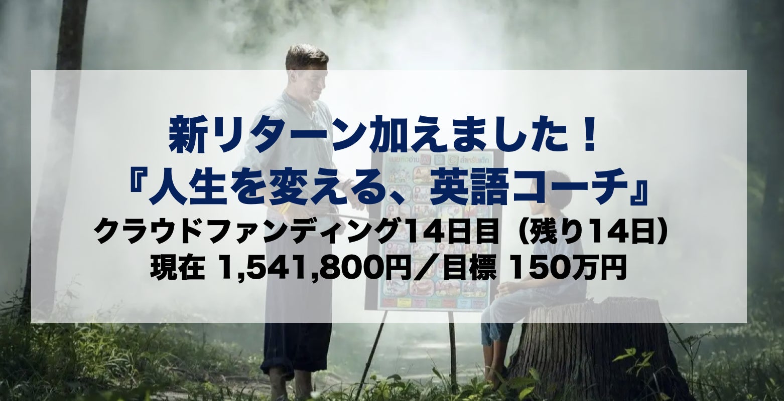 今回はおすぎさんとこの『人生を変える、英語コーチ』というリターンについて紹介させてください。