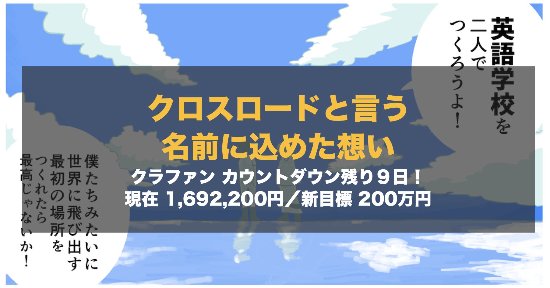 今回のクラファンやクロスロードオンラインの準備をしながら改めて、僕の人生は「クロスロード」という名前の由来通り、『繋がり離れ、また繋がる「結び目」』に支えられていると思います。この「結び目」を固く、多くしていくことが自分の進むべき道のように感じています。