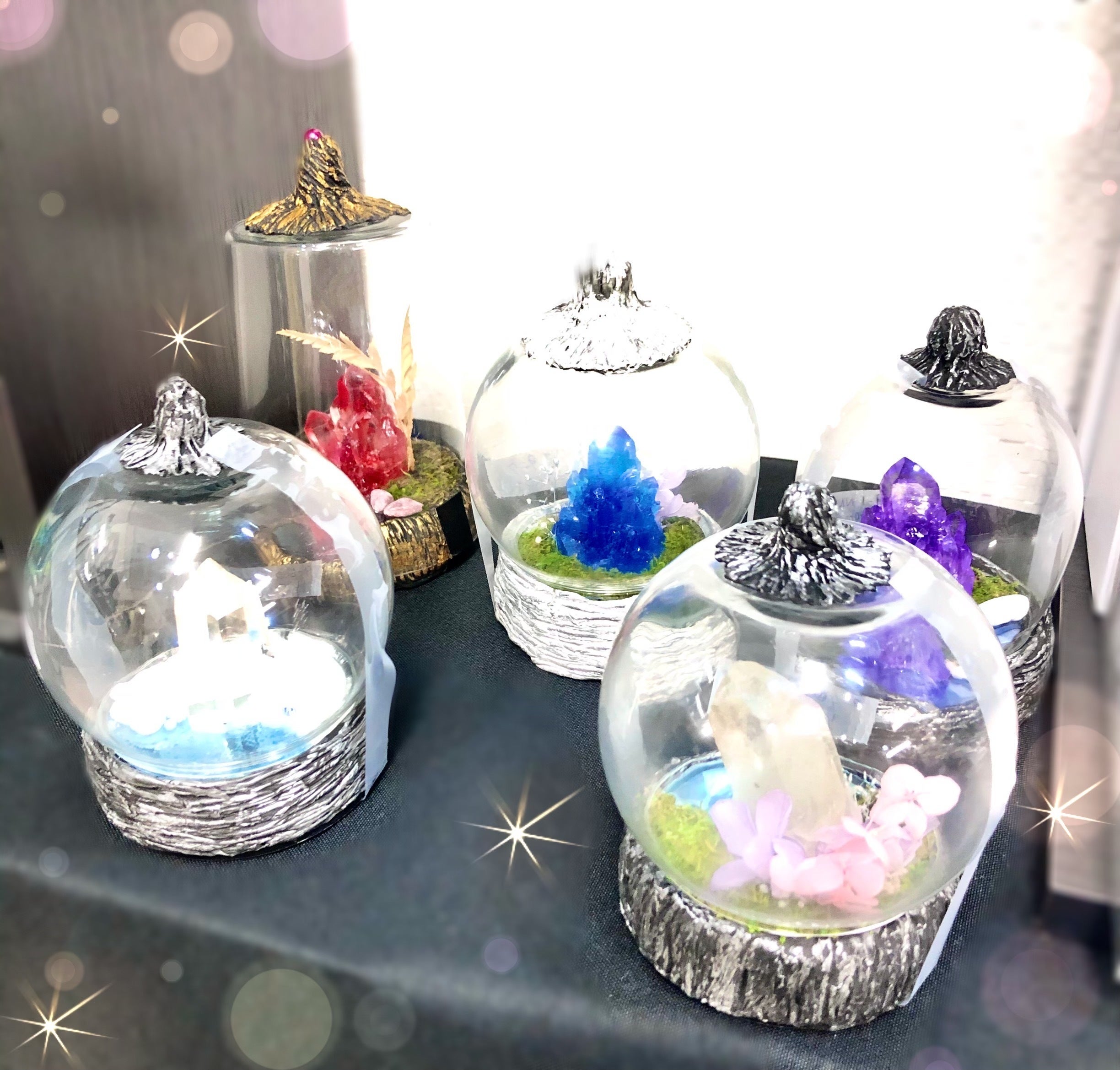 D◆ウランガラスのガラスドームランプ 耳飾りと簪セット