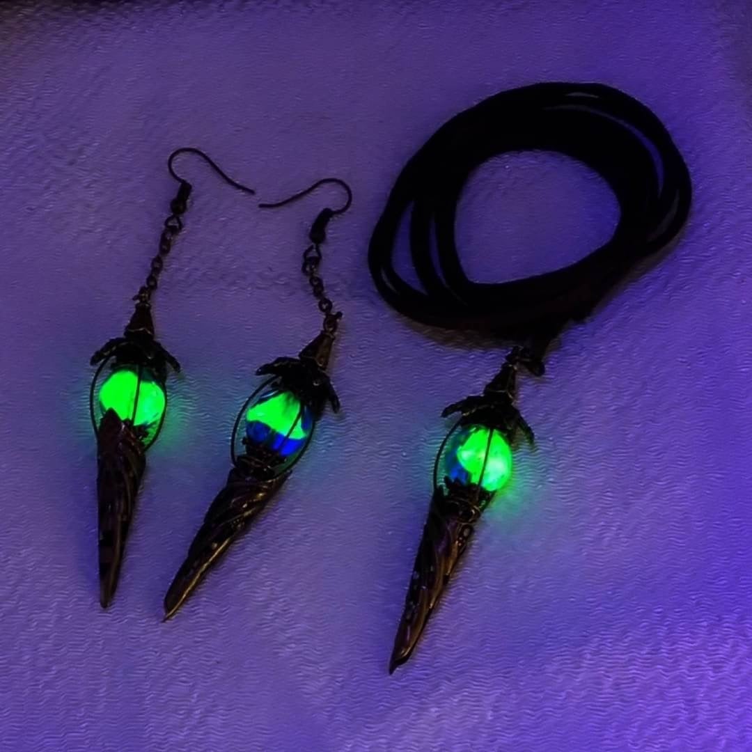 C◆ウランガラスのガラスドームランプ 耳飾りとペンダントセット