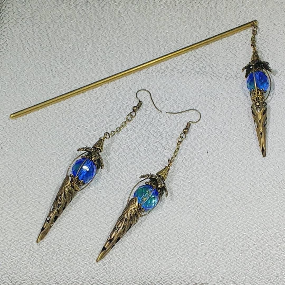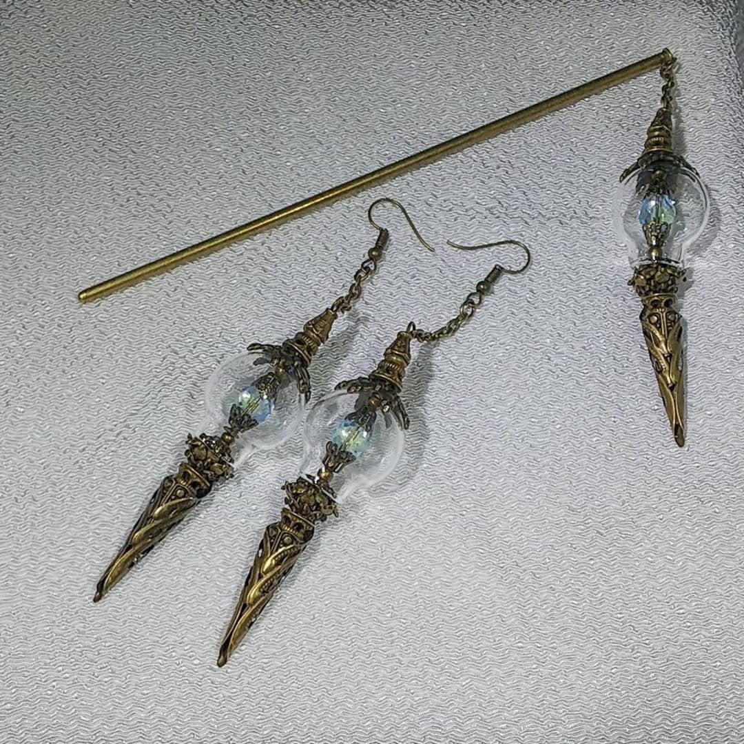 B◆ウランガラスの一角ランタン 耳飾りと簪セット