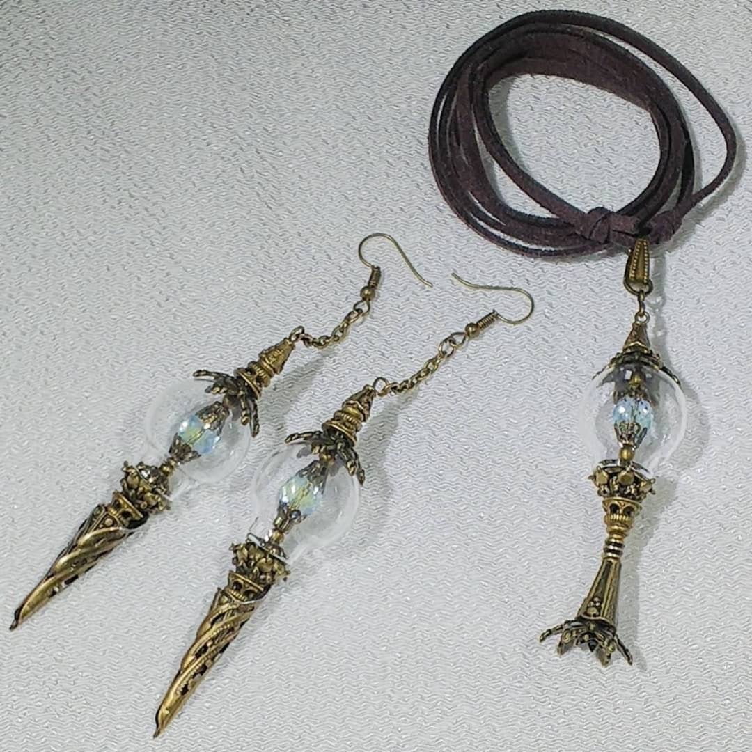A◆ウランガラスの一角ランタン 耳飾りとペンダントセット