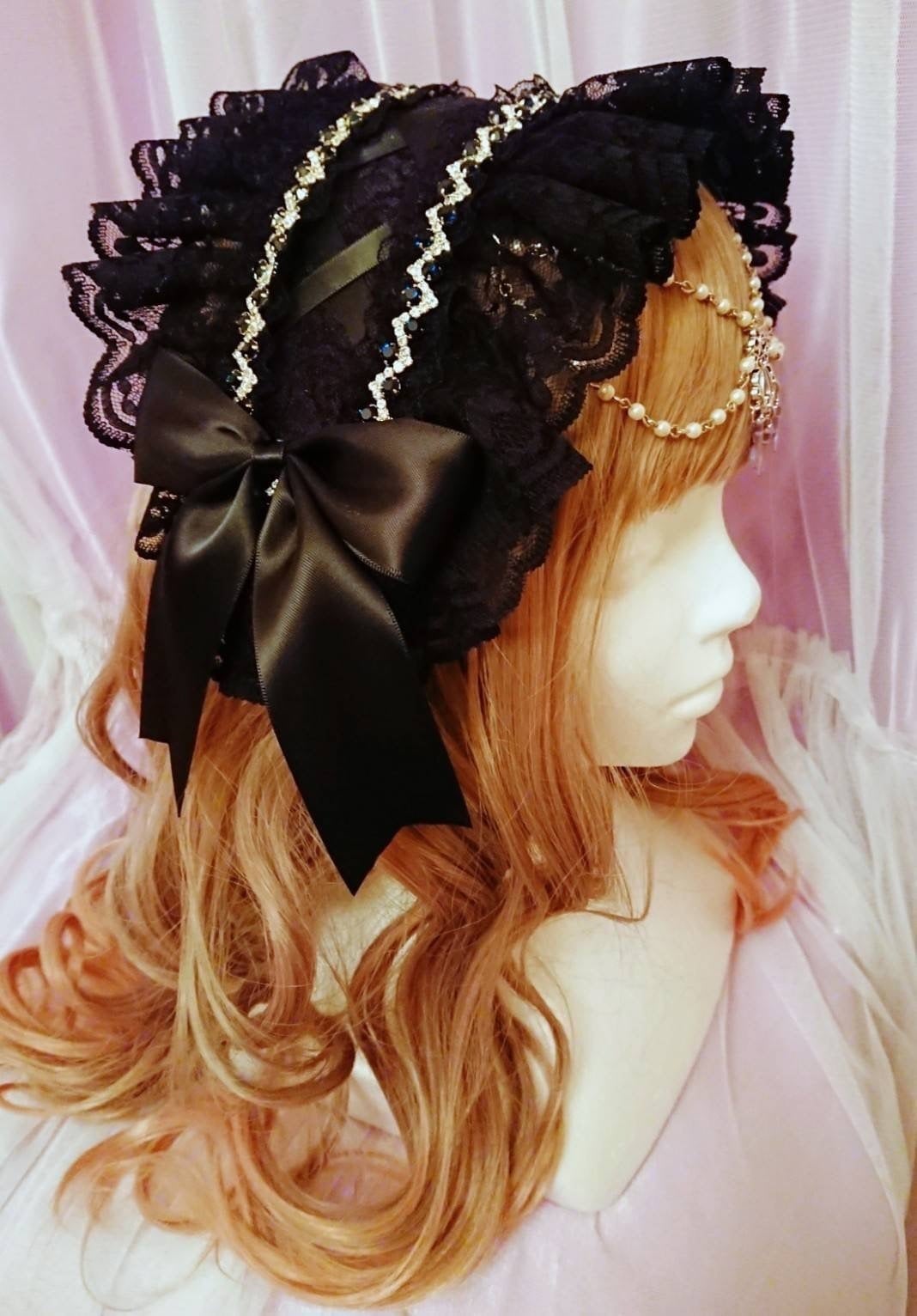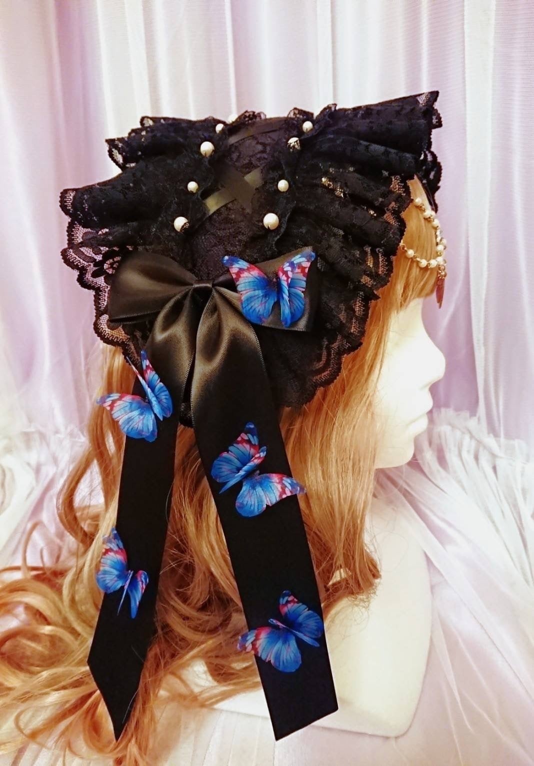 ◆蝶々ロングリボンヘッドドレス & ボリュームレースお袖とめのセット