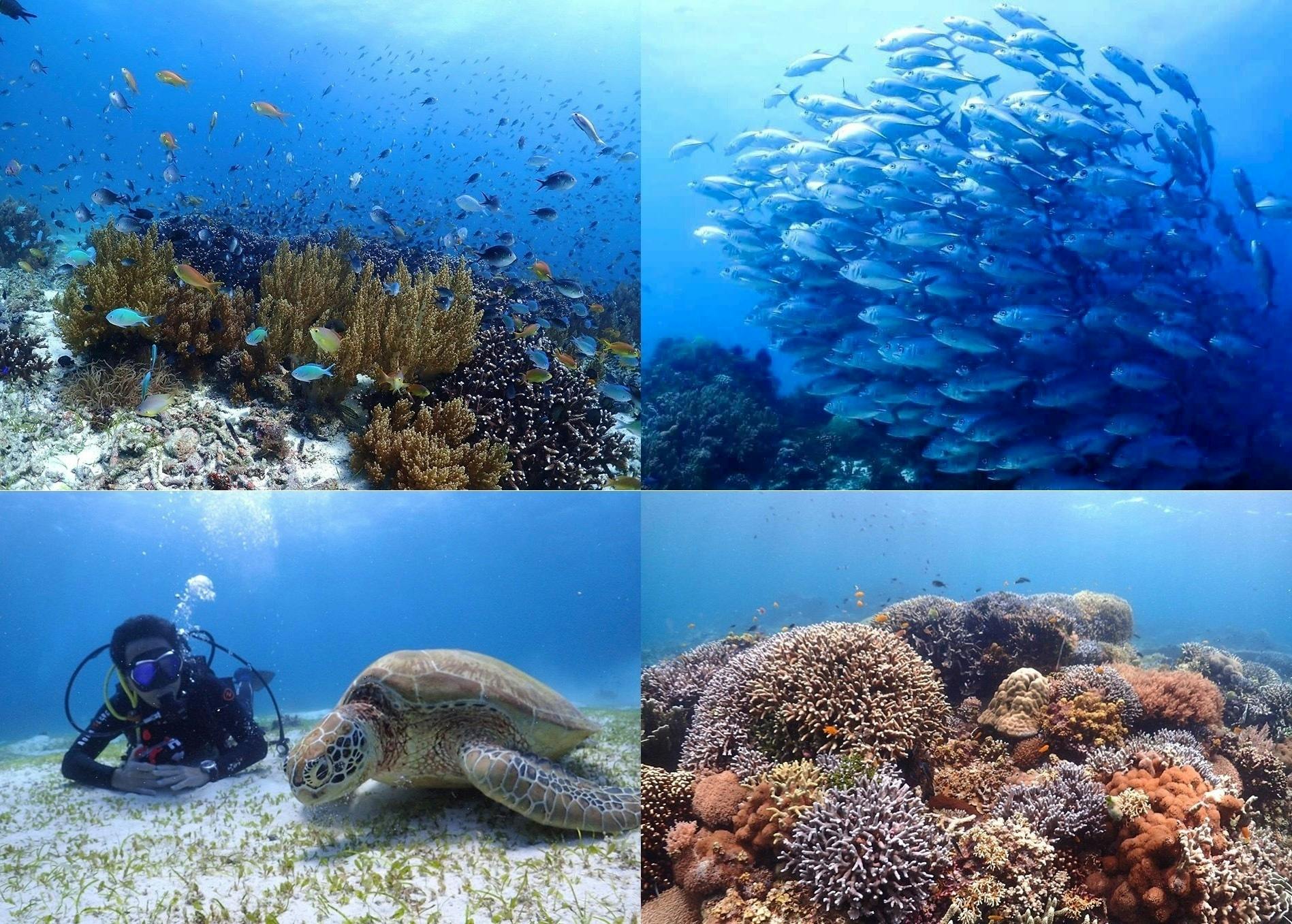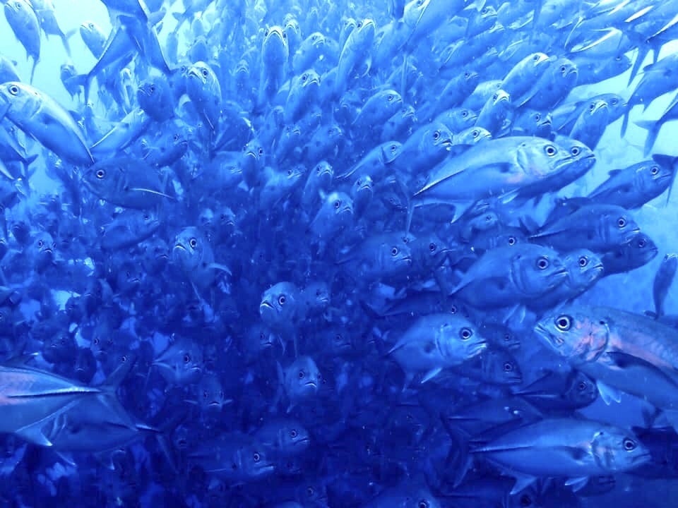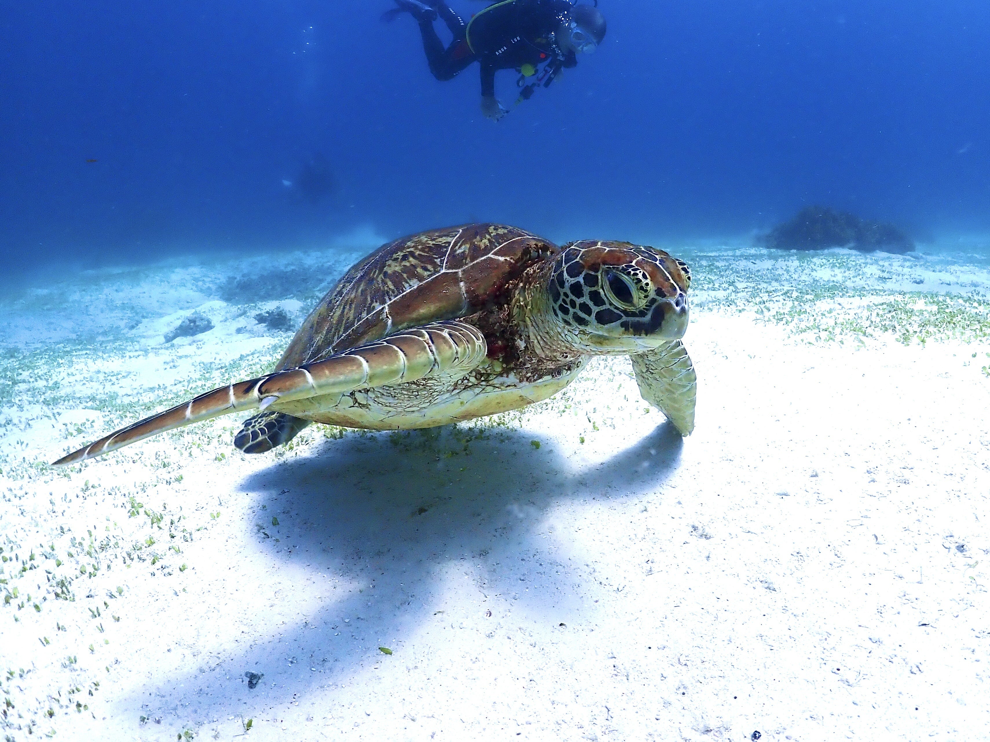大人気のバリカサグ島では大迫力のギンガメアジのトルネードが見れ、アオウミガメをじっくり観察しながらツーショットなんかも撮れます。