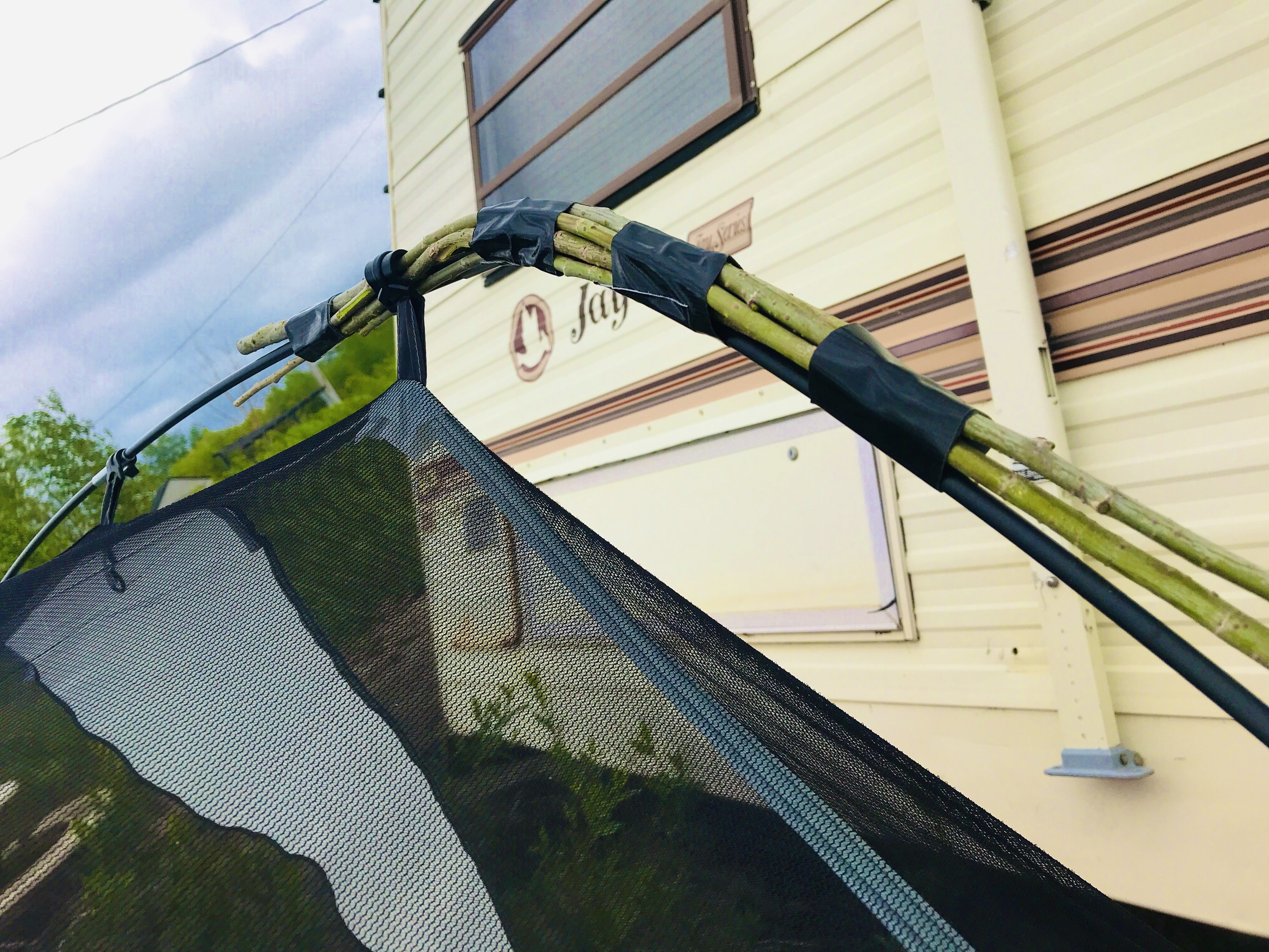 2)テントはホームセンターで3000円。出発早々30km/hの強風でポールが折れて、その辺に生えていたアスパラみたいな雑草で補強しながら使用する事、3週間が経過しました。