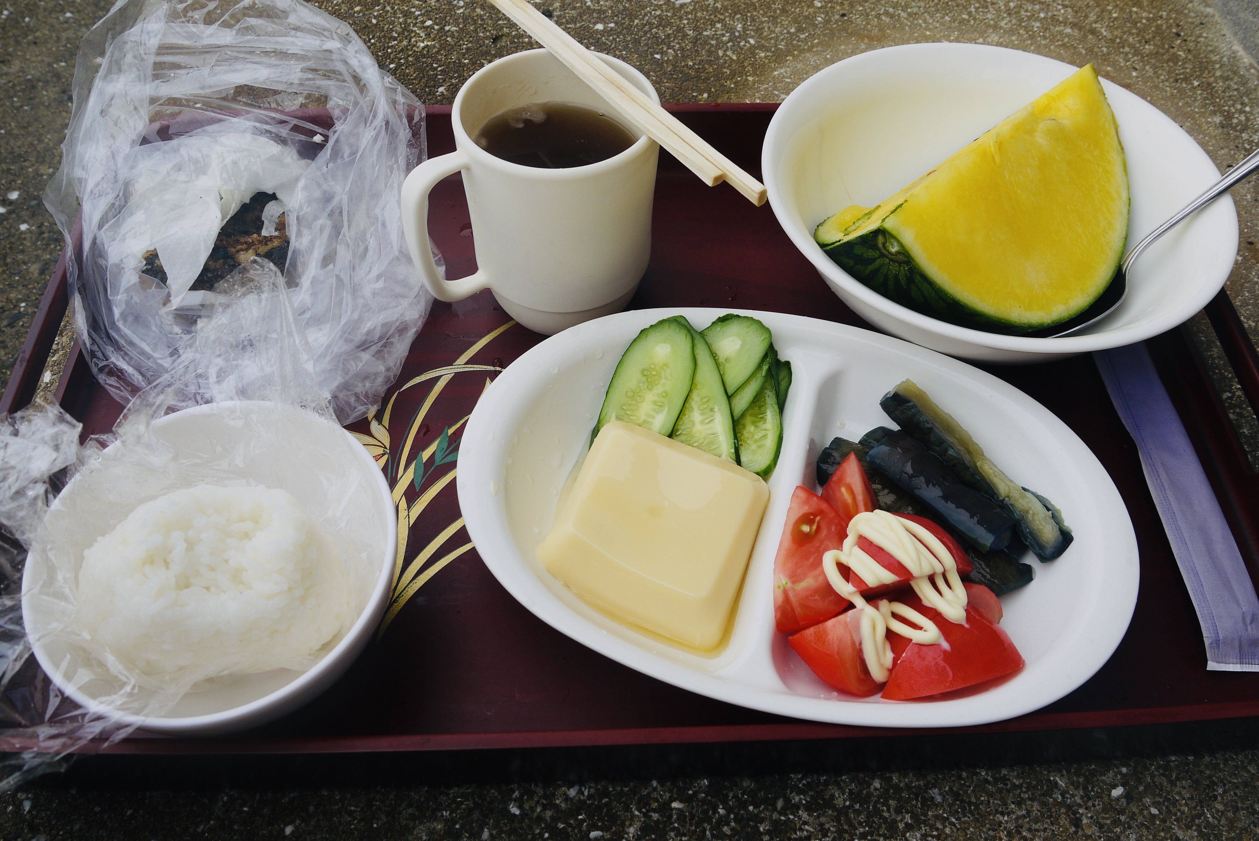 港で休憩していたら、おばちゃんが突然こんな豪華なお盆を持ってきてくれたことも。