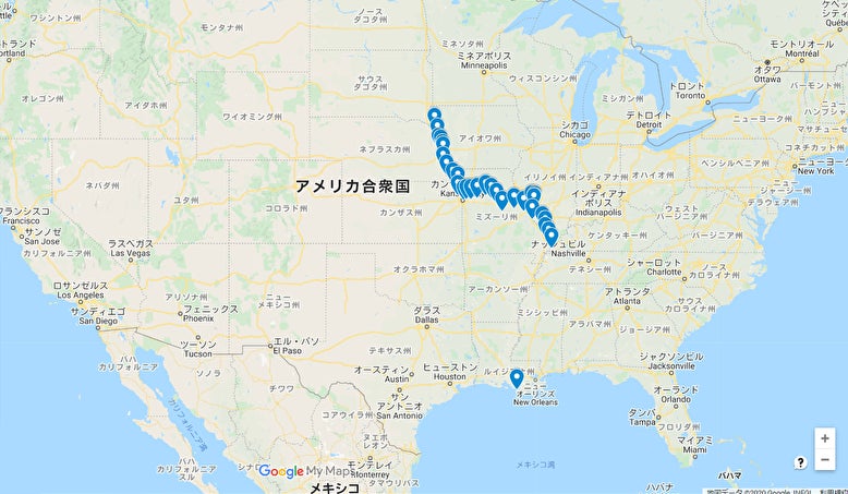 今回はこの同好会を通じて、今度通過予定のミシシッピ川下流の2都市に住むエンジェルとコンタクトを取り、ステイ先を確保しました。