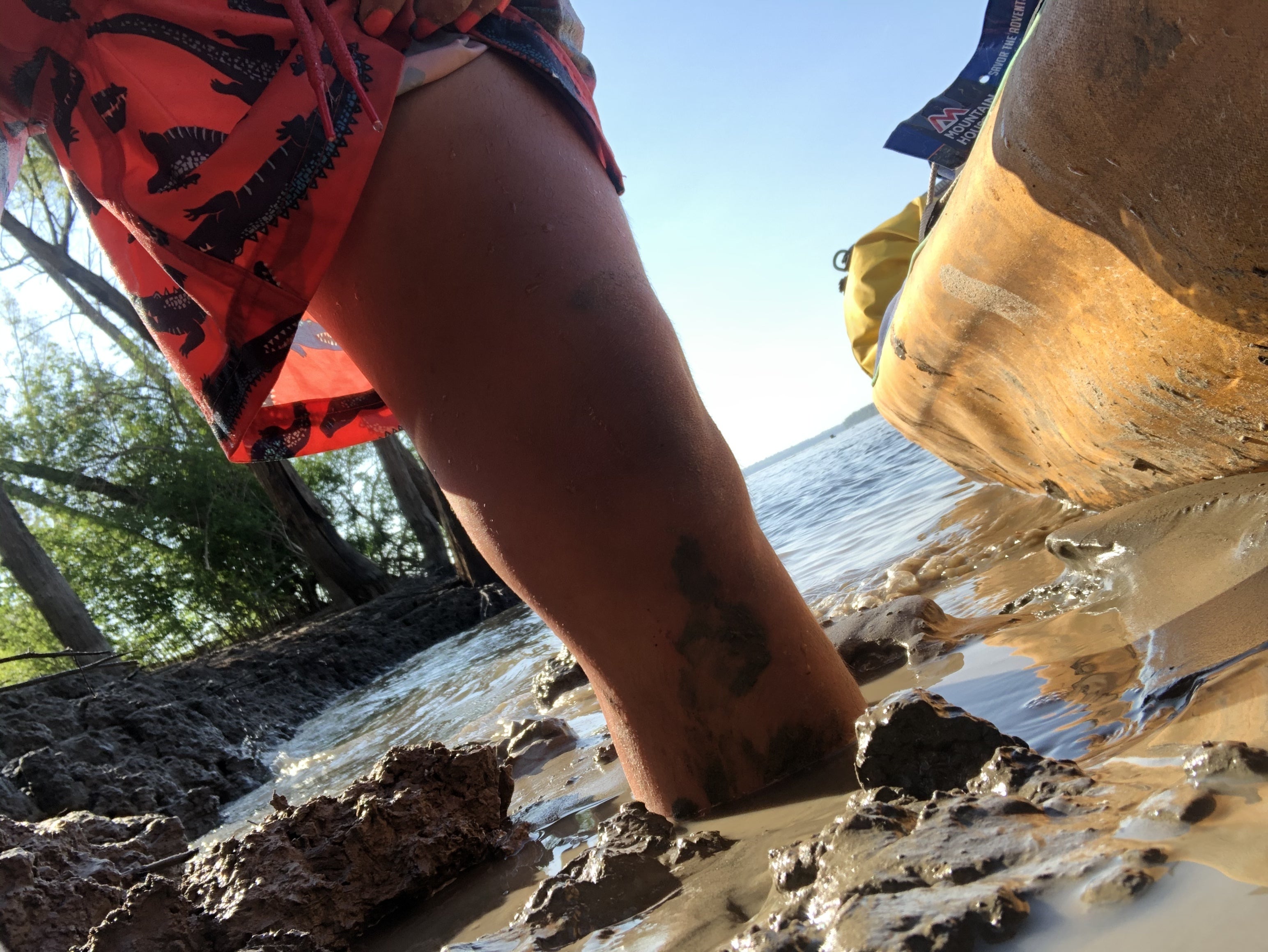 ミシシッピ川は別名「泥の川」として知られていて、膝近くまで泥に浸かってしまうこともしばしば。