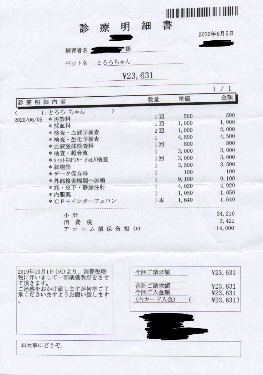 とろろの治療費に全額使わせて頂きます。