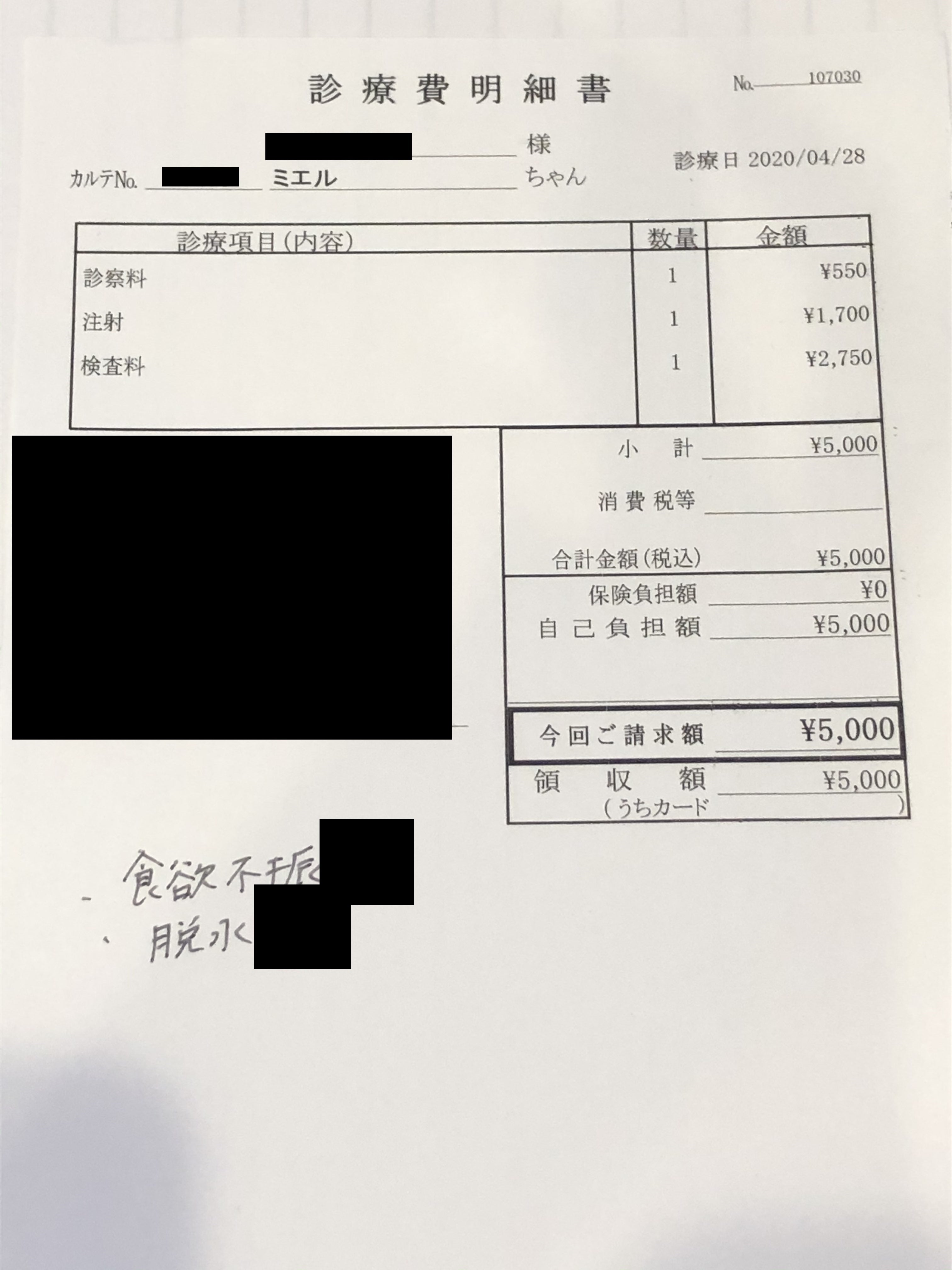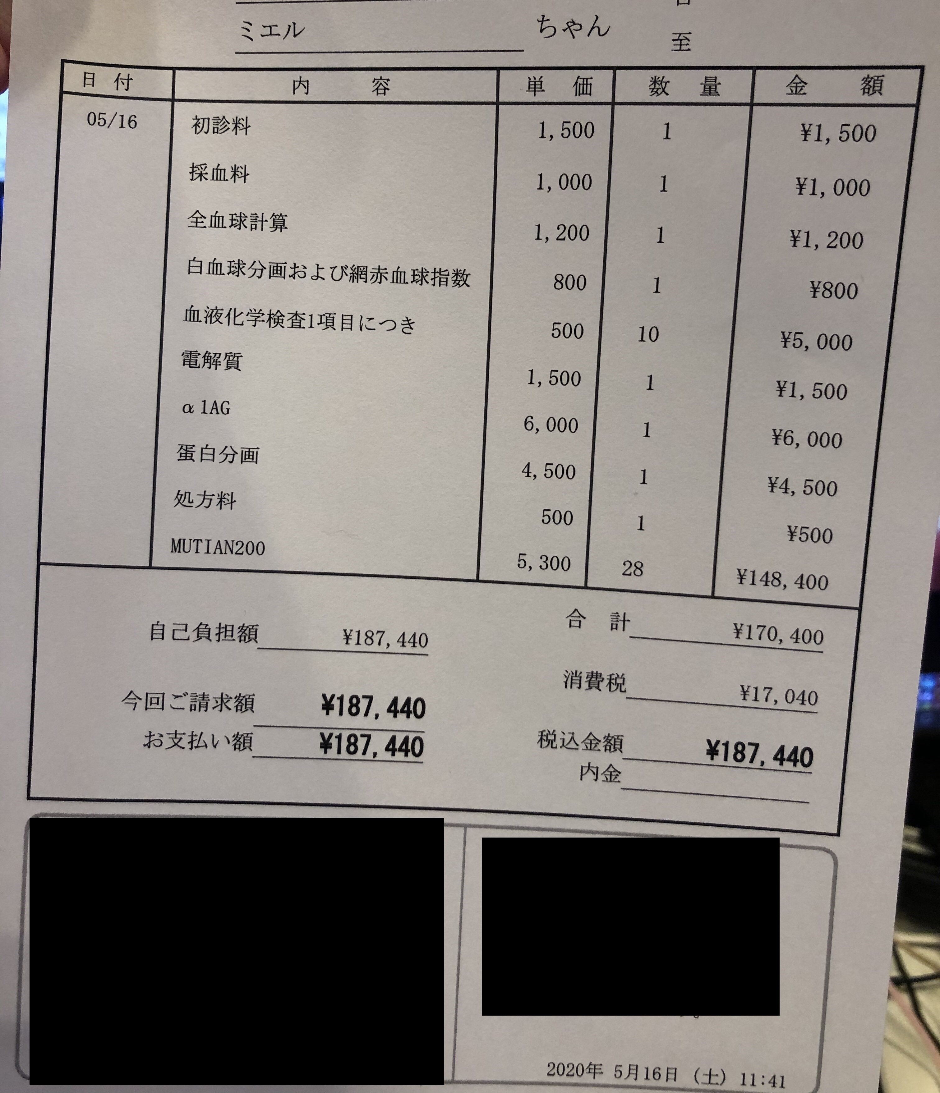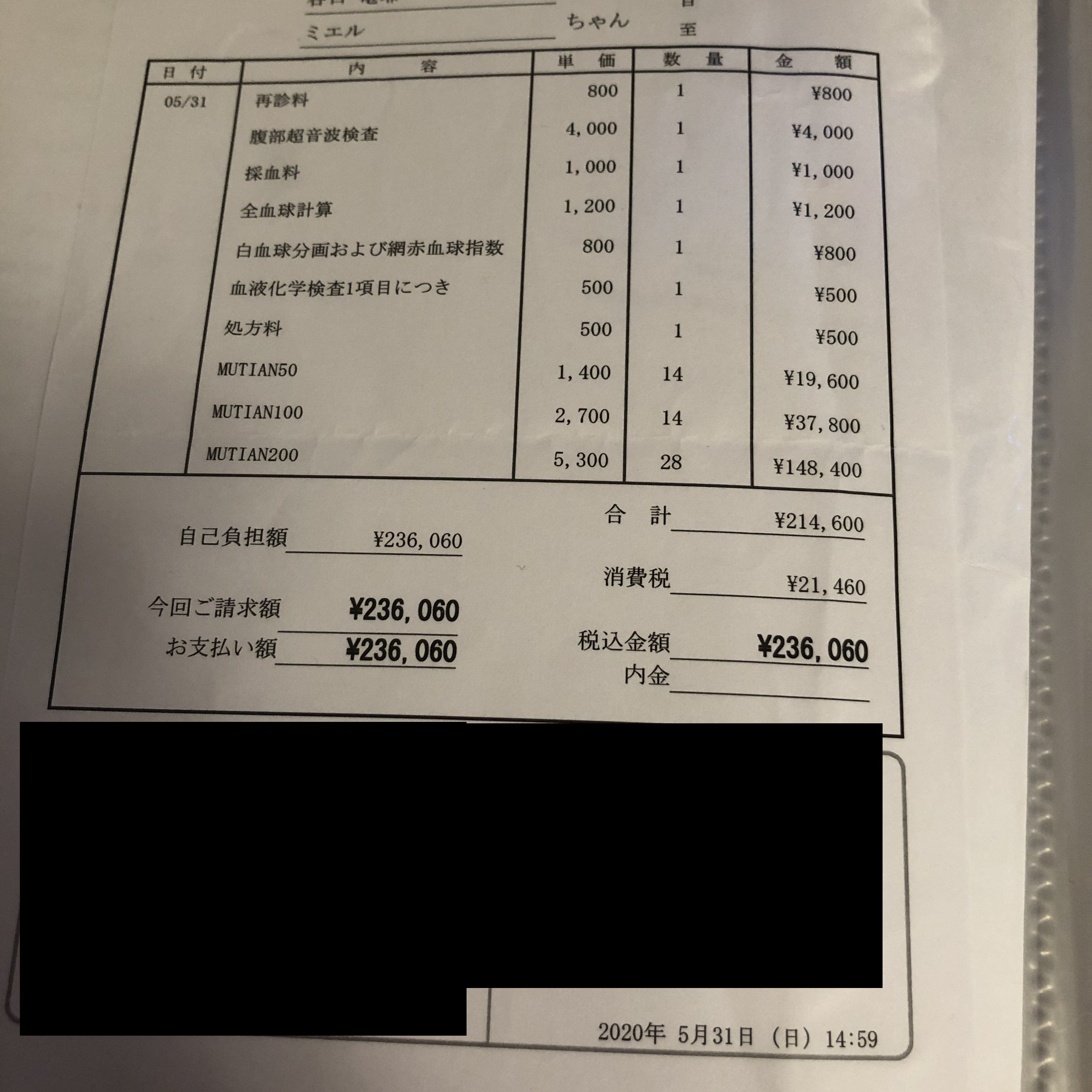 差し引いた¥176,205は今後の検査代やお薬代の治療費に充てますが、