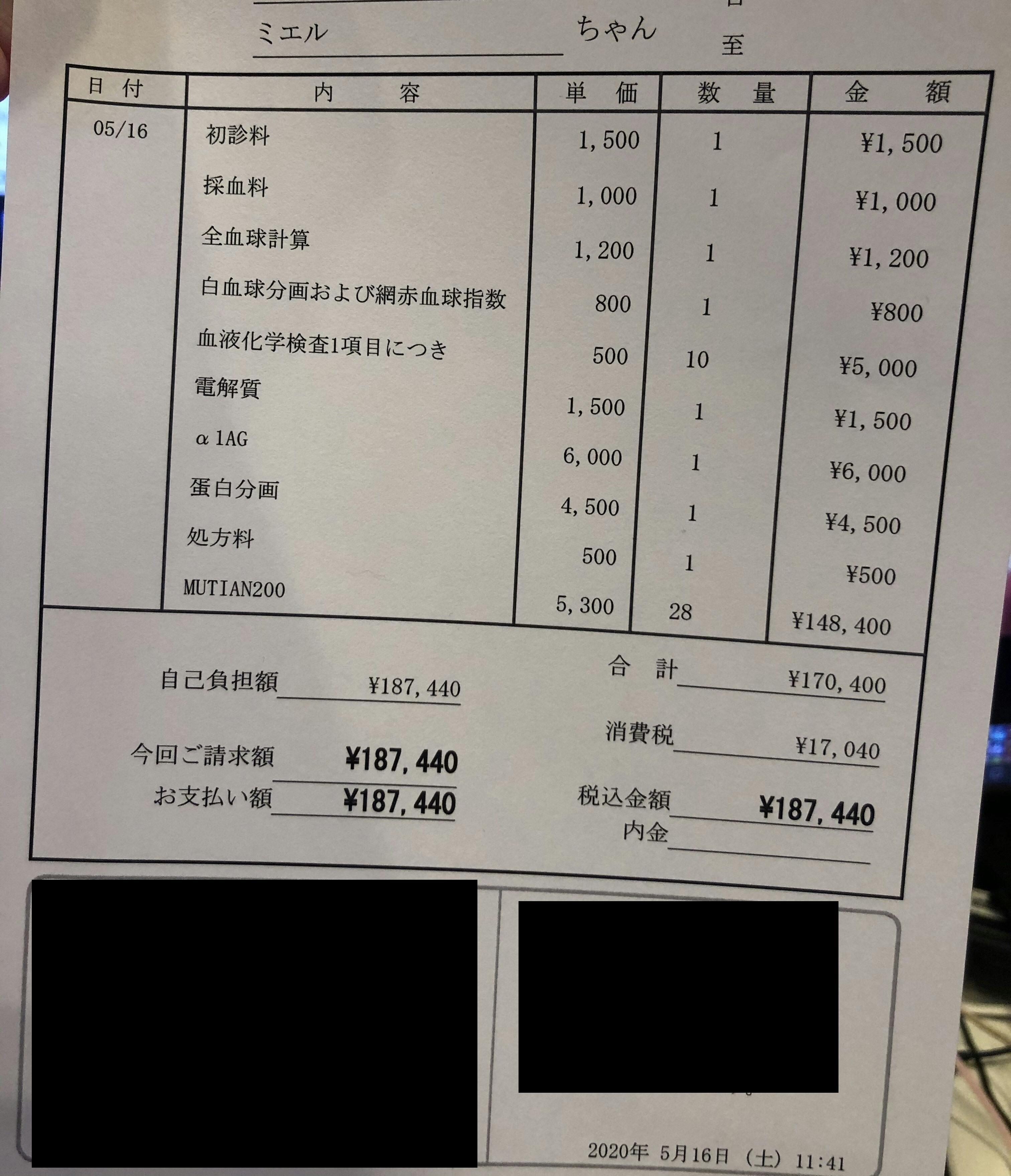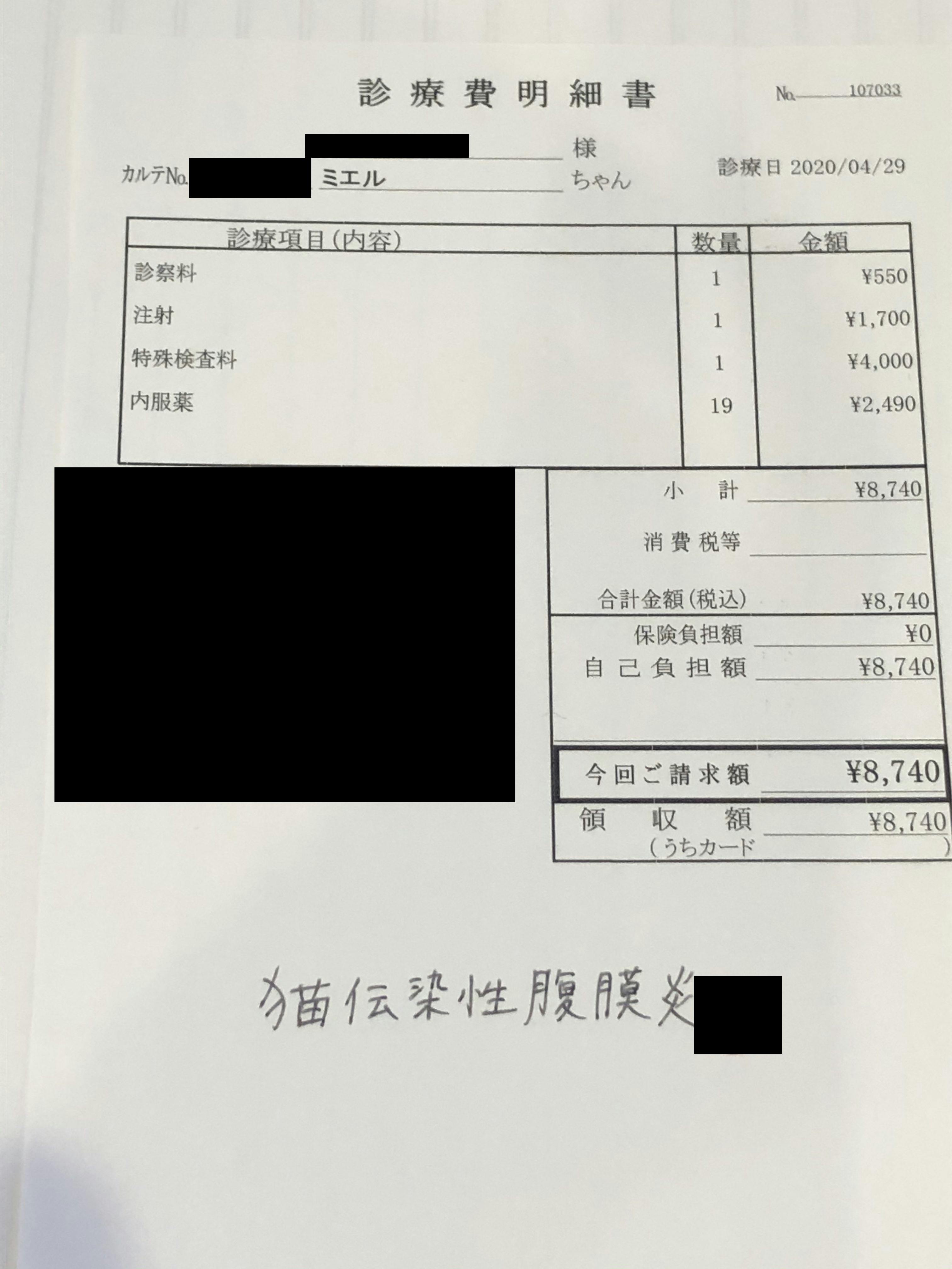 FIPの診断を受けるまで、受けてからの治療費のFIPが発覚するまで