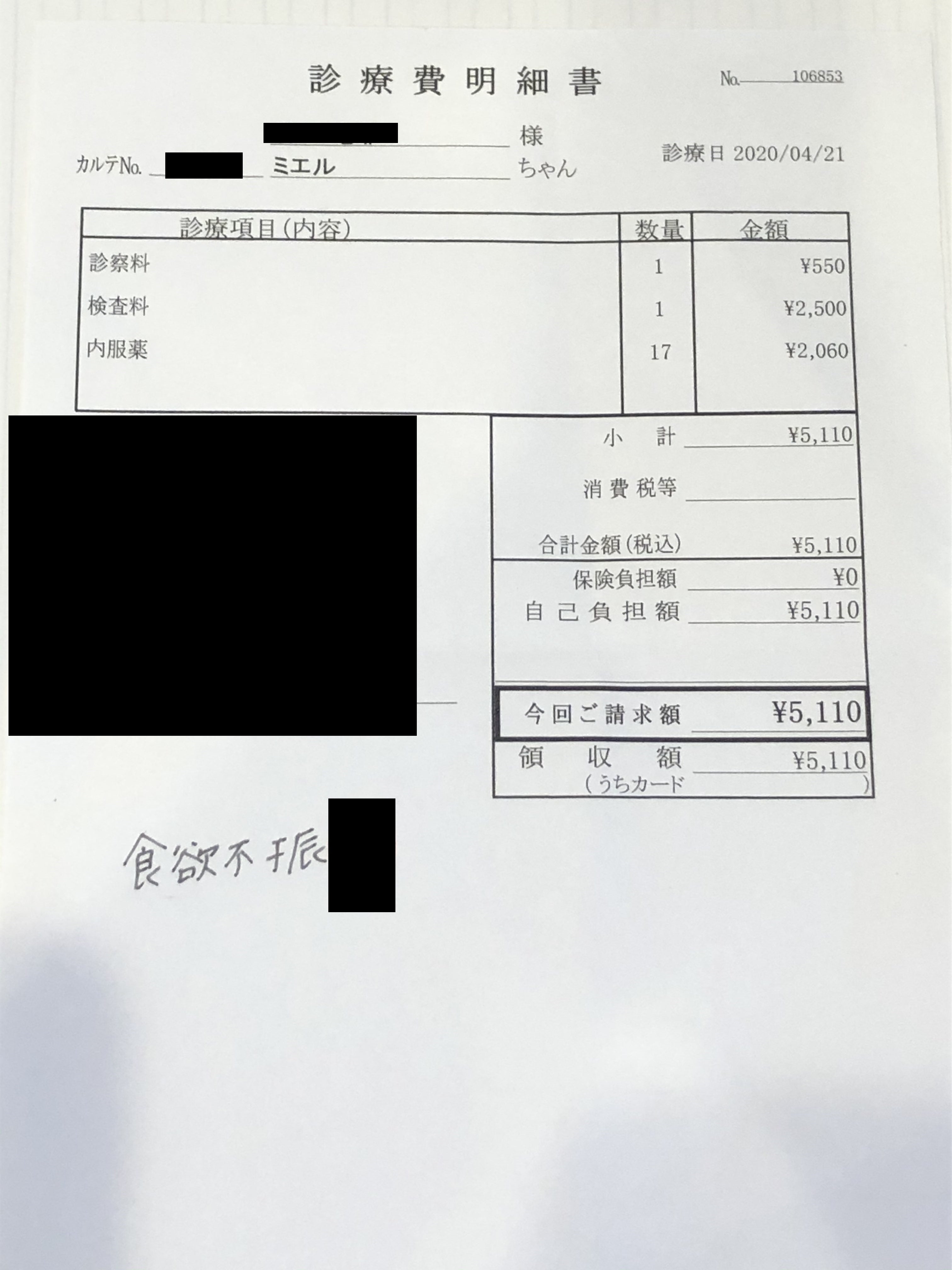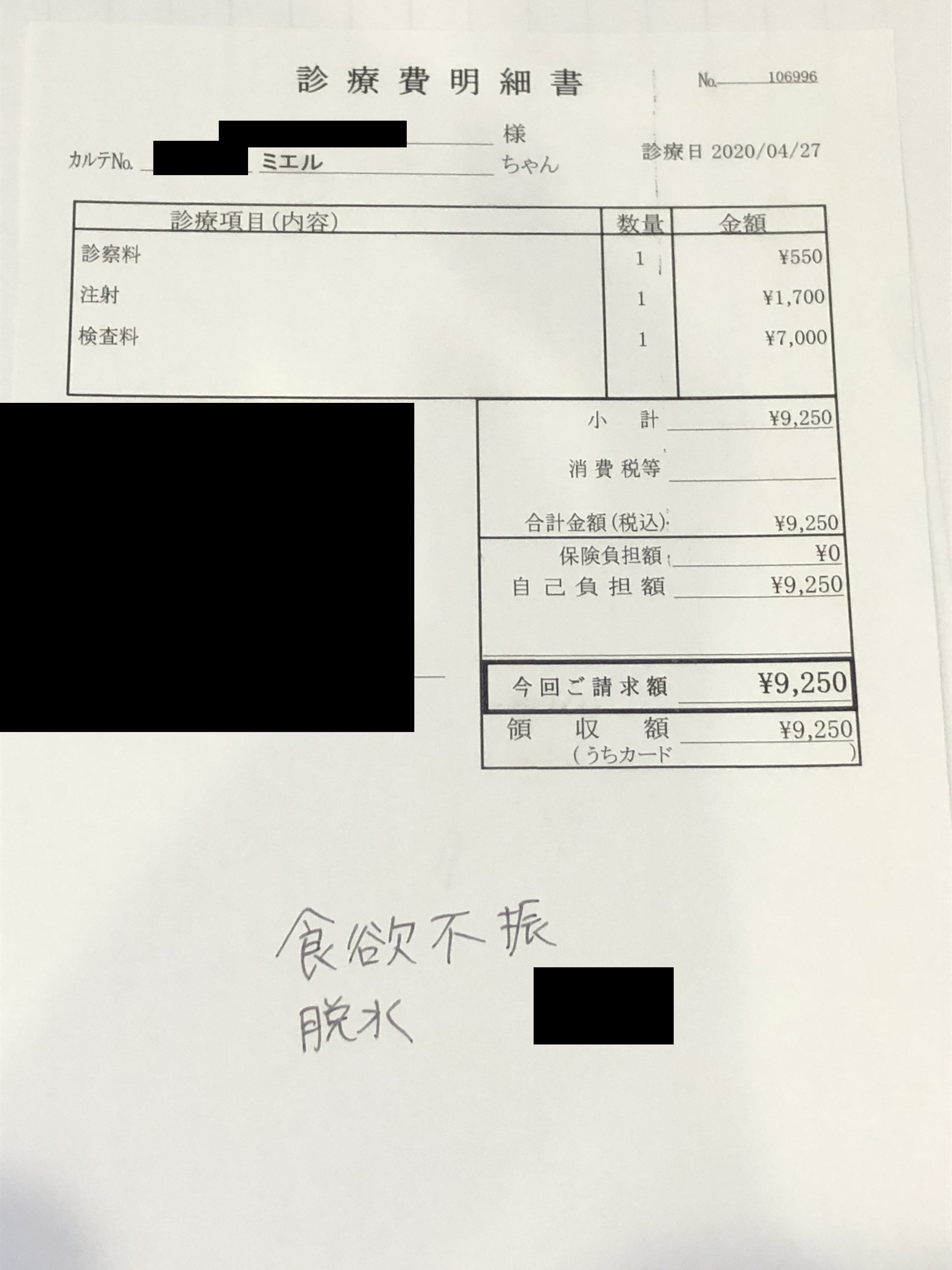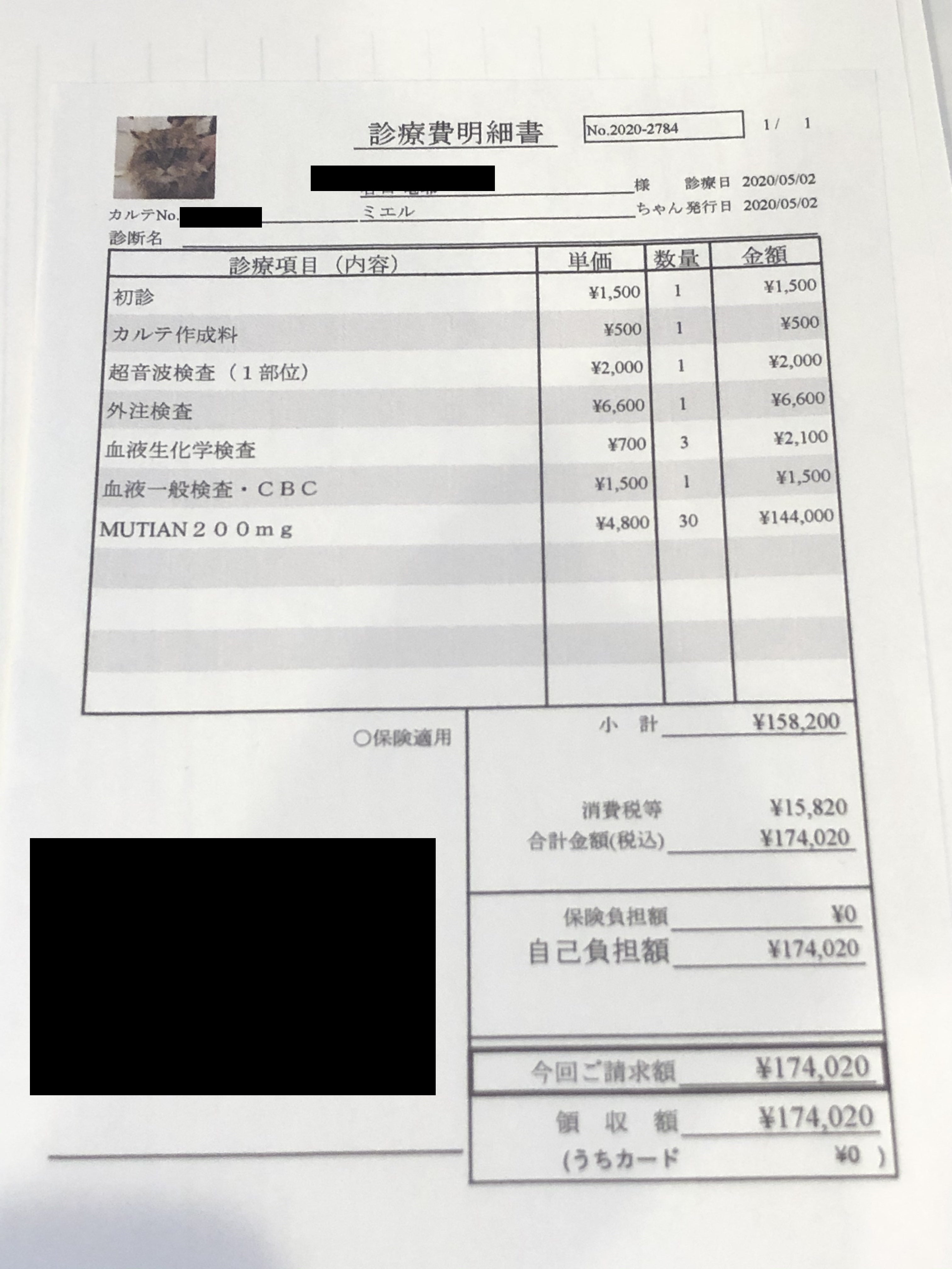 差し引いた¥176,205は今後の検査代やお薬代の治療費に充てますが、